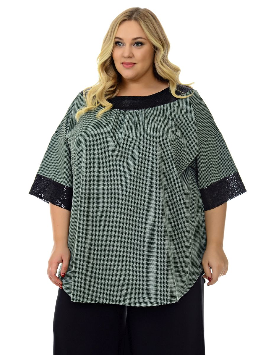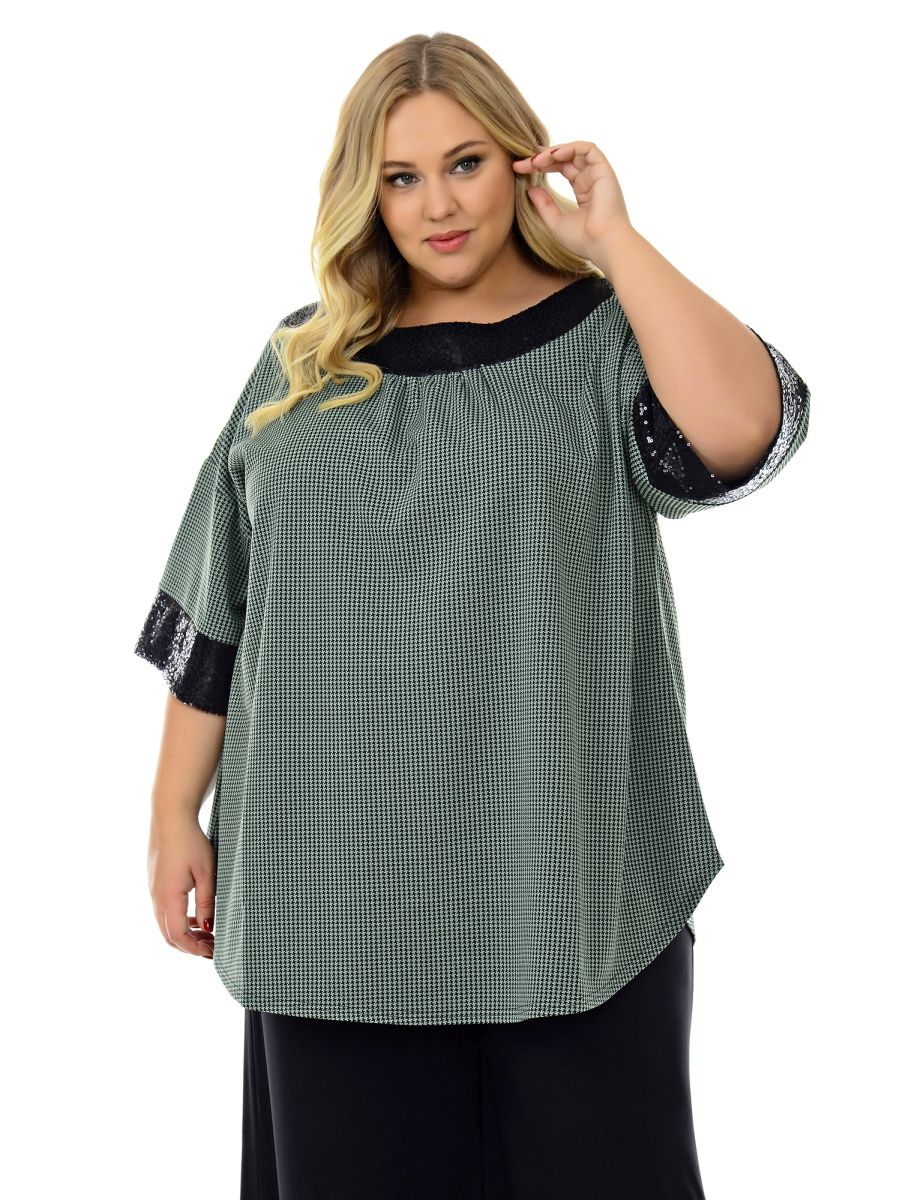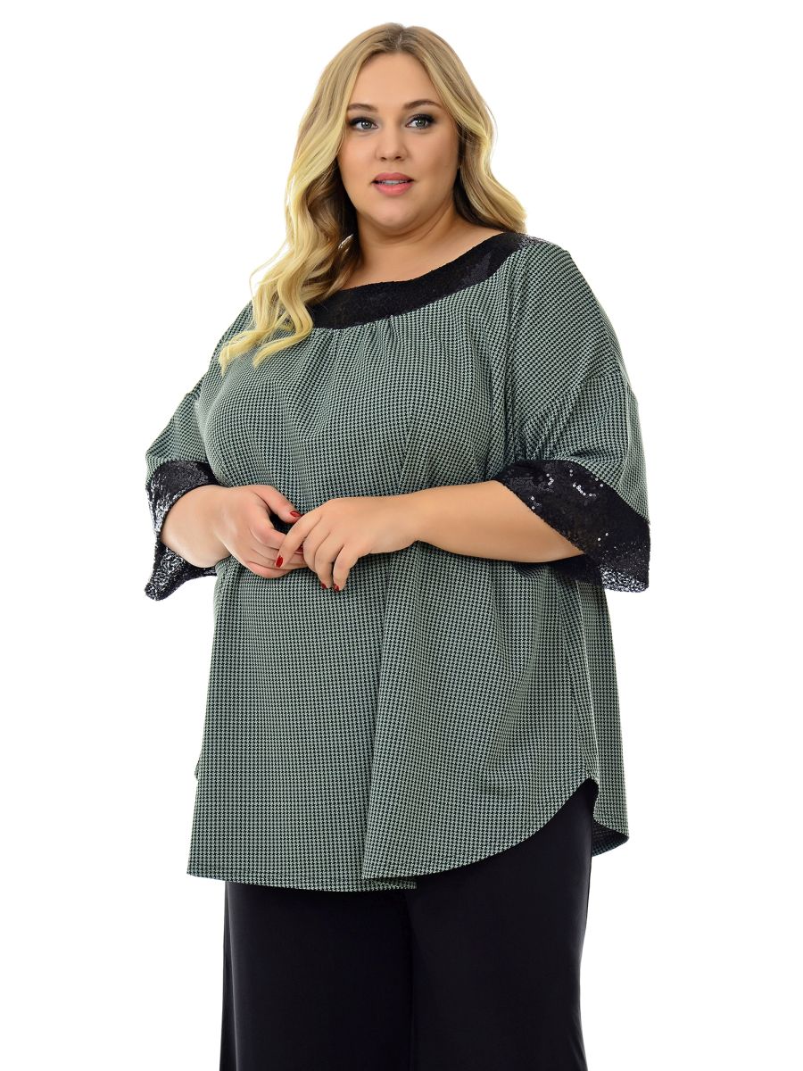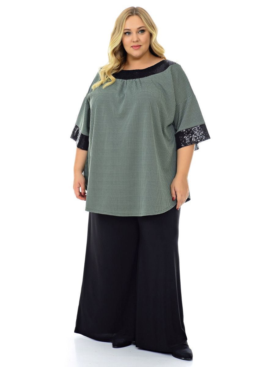 Туника свободная, "гленчек" оливковый, отделка - пайетки