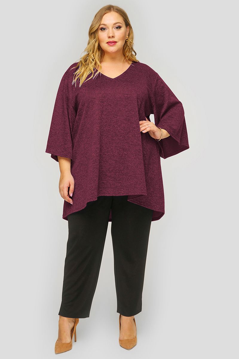 Свободная туника с асимметричной линией низа  из мягкого джерси-меланж. V-вырез горловины. Рукав расклешенный. Идеально сочетается с джинсами, зауженными брючками 1412604.