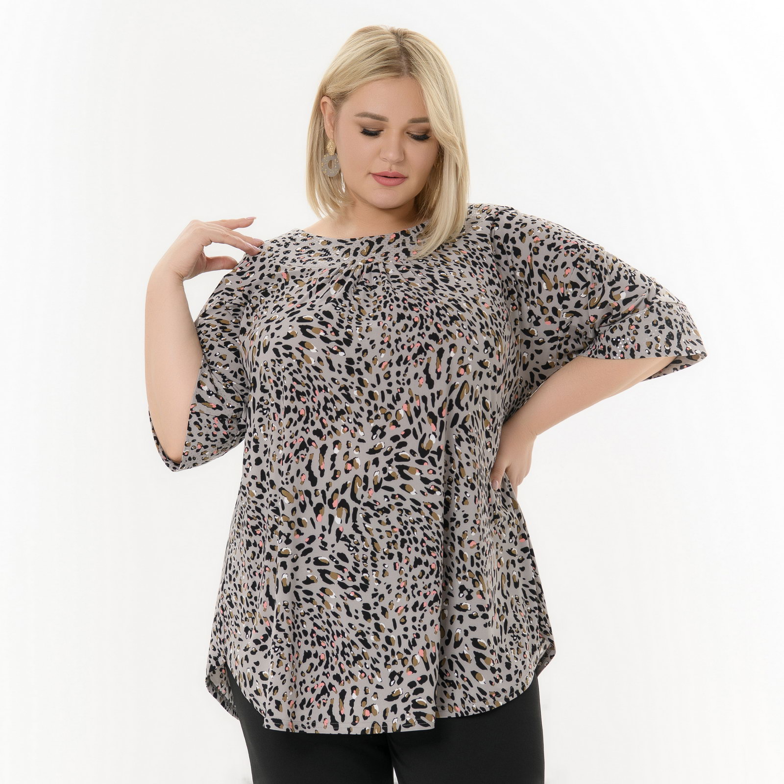 Туника свободная, принт "леопардовый"