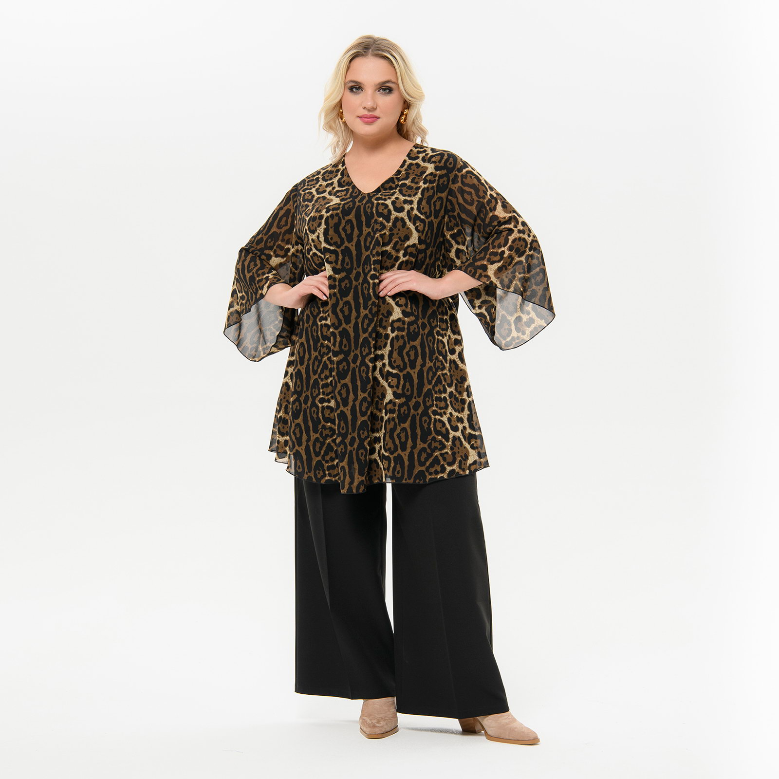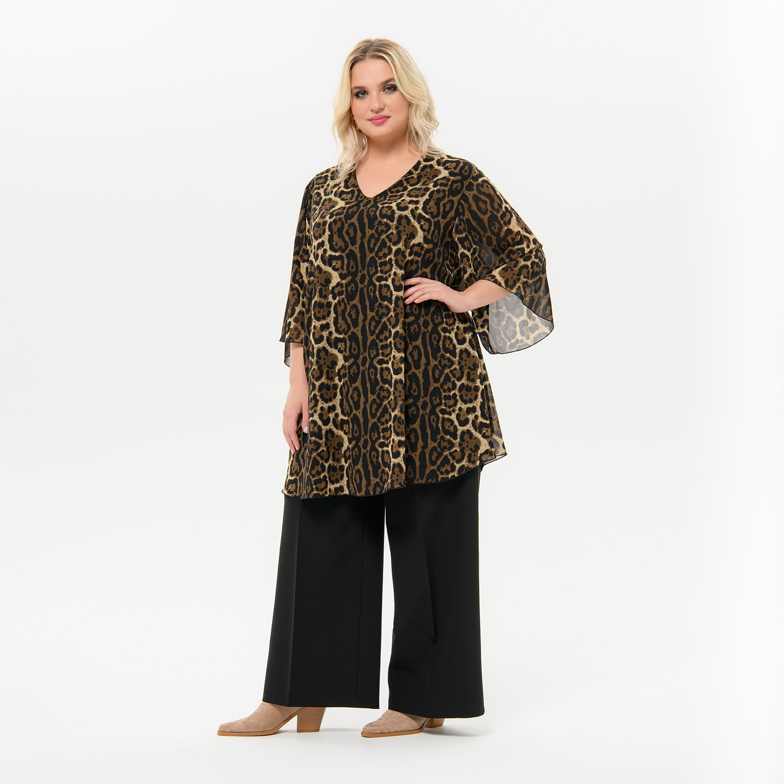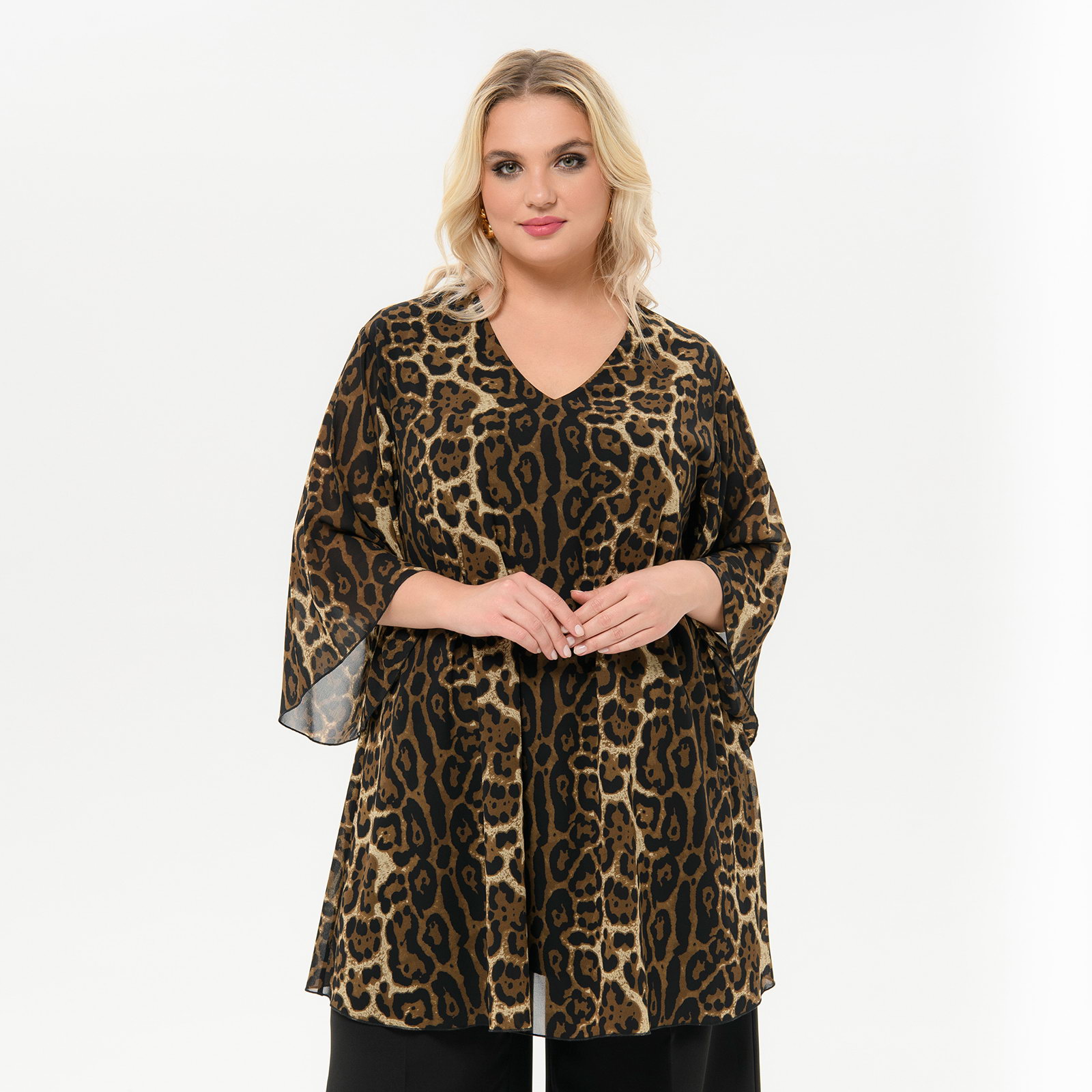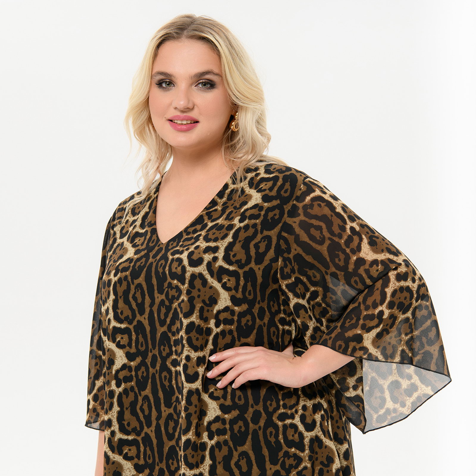 Туника свободная, шифон, принт "леопард"