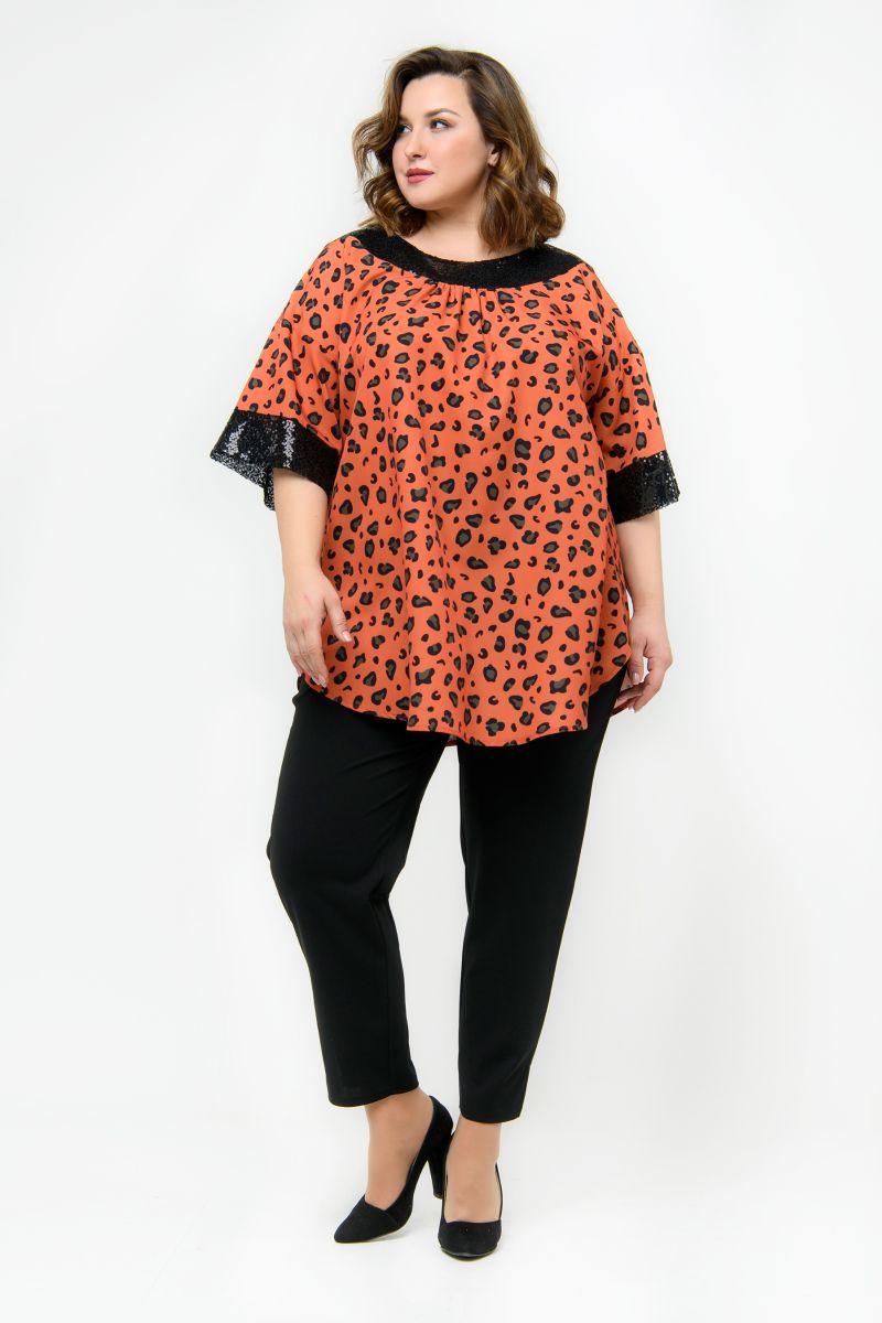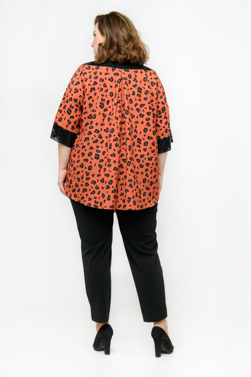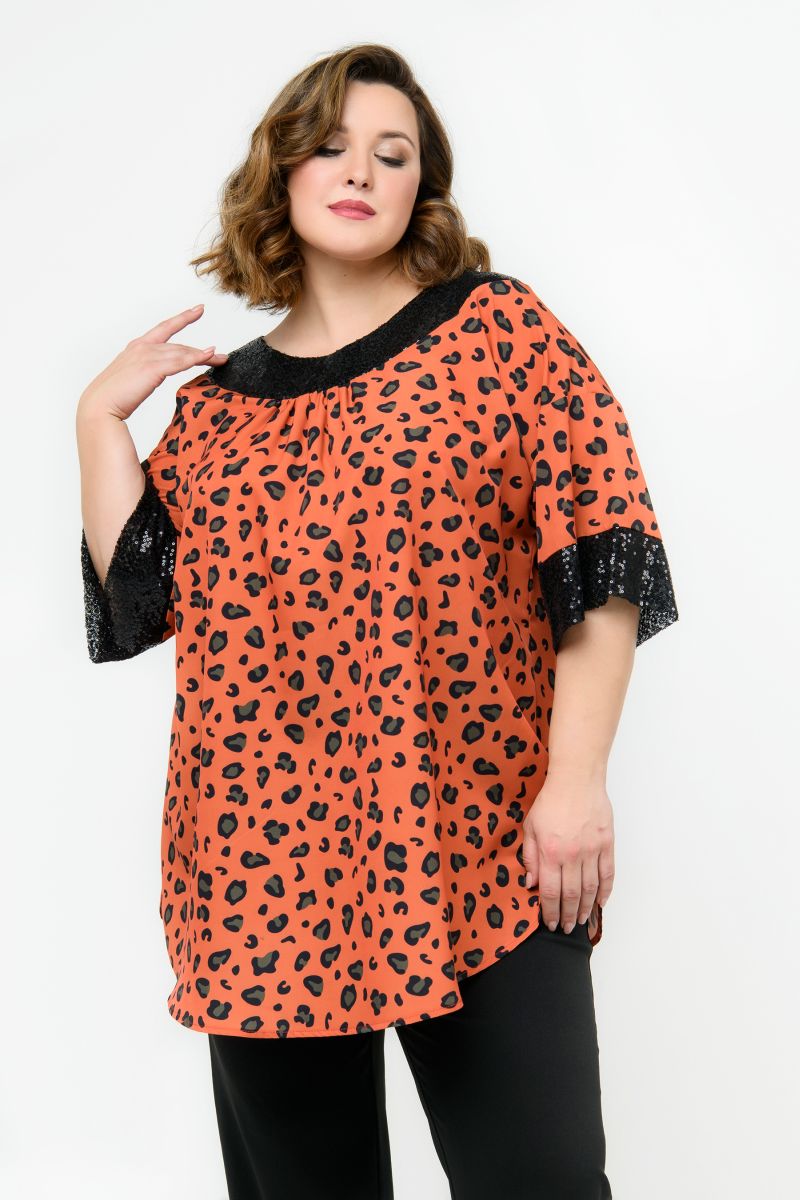 Туника свободная, терракотовый леопард, отделка-пайетки