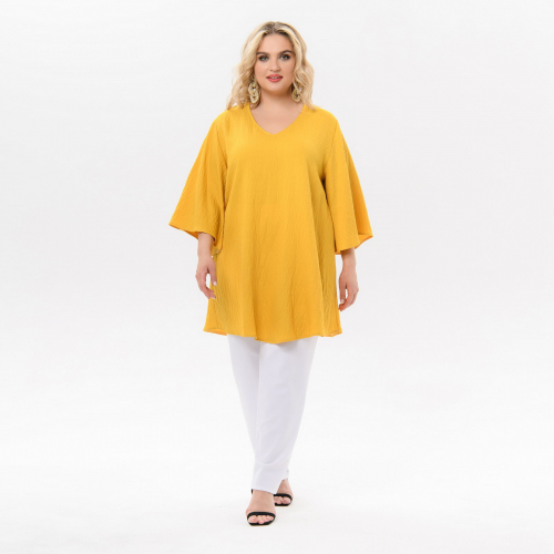 Стильная туника свободного силуэта из струящейся блузочной ткани.