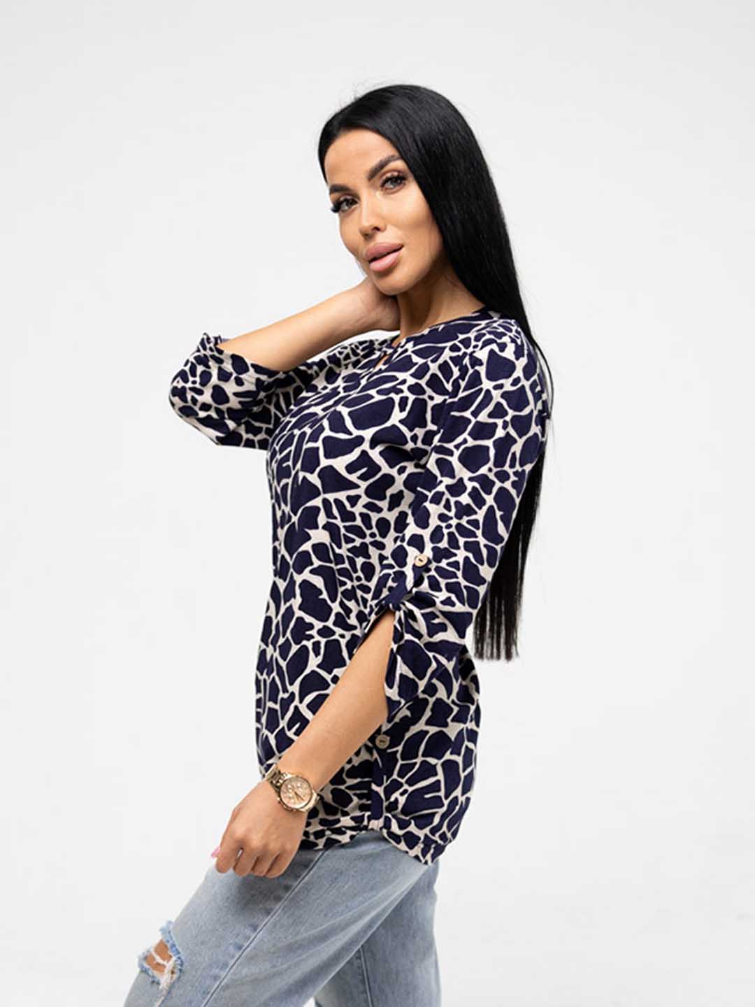 Женская туника из хлопка, из ткани премиум качества. Длина до уровня бедер - создаст правильный силуэт, рукав 3/4 подчеркнет изящество Ваших рук, а оригинальный вырез горловины привлечет внимание к зоне декольте. Правильный крой подчеркнет талию и подарит Вам ощущение комфорта.