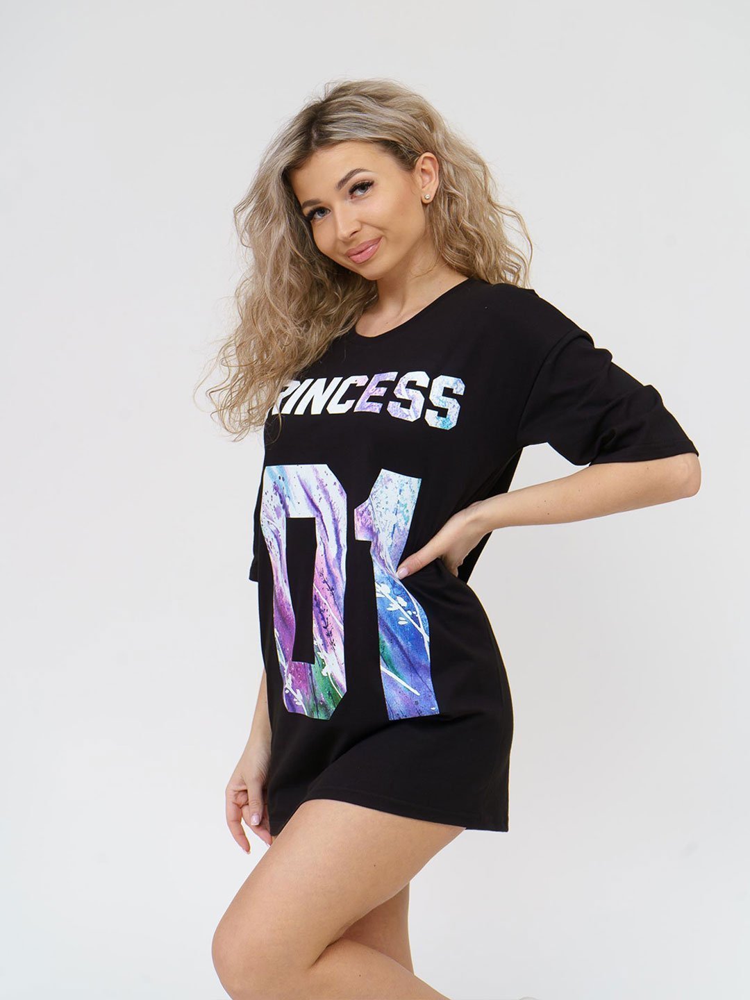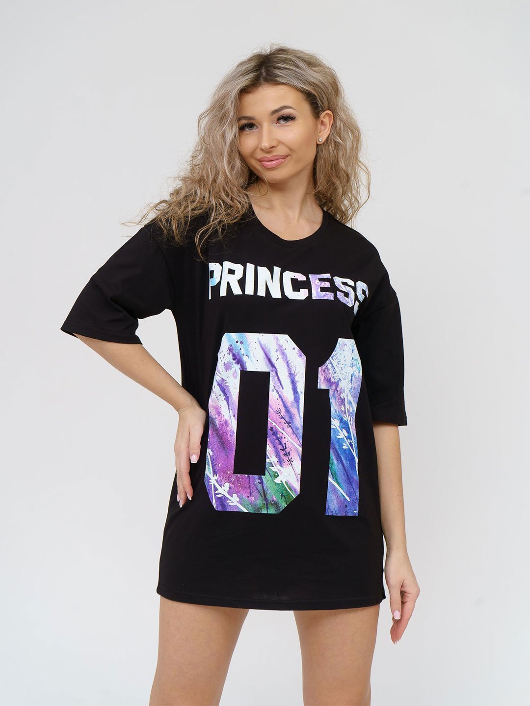 Туника женская из 100 % хлопка с эффектным стильным принтом поможет создать очаровательный образ, подарит чувство легкости и комфорта. Платье туника прямого свободного кроя идеально садится по фигуре, скрывает все недостатки. Наша туника универсальна, она идеально подойдет в качестве домашней одежды и как повседневеый лук, дополните тунику кедами и сумкой кросс-боди. Черный цвет материала прекрасно сочетается с любыми аксессуарами.