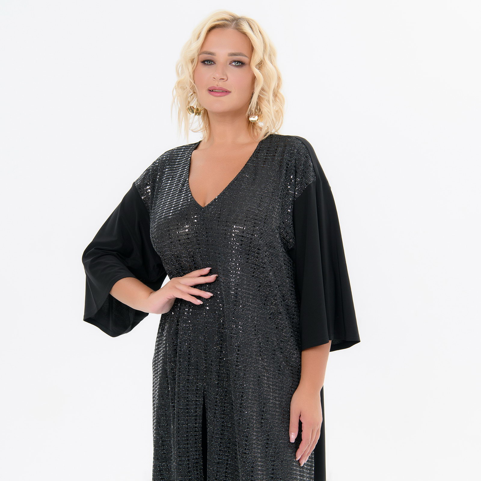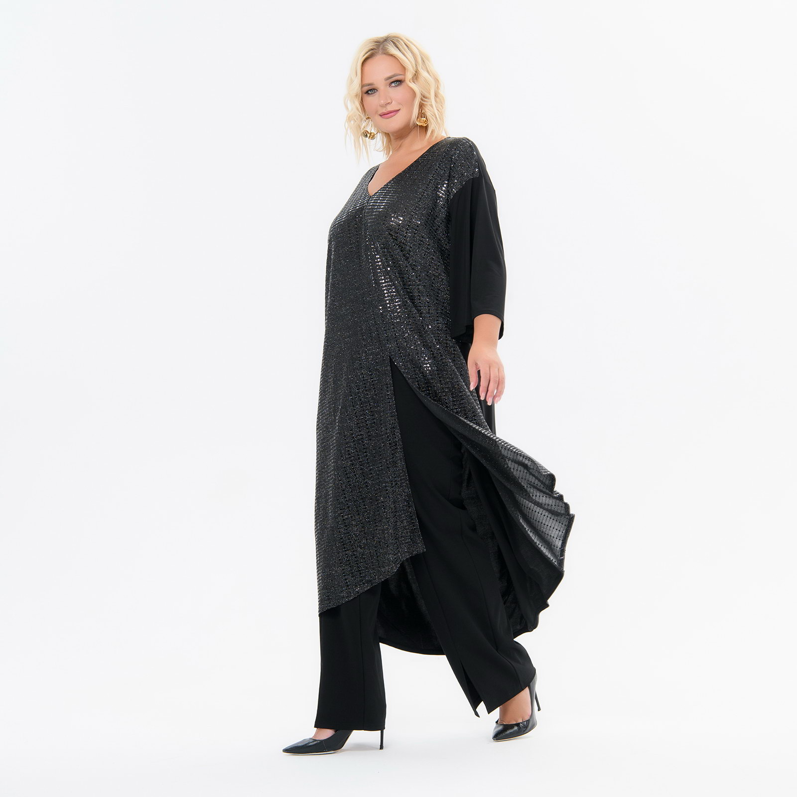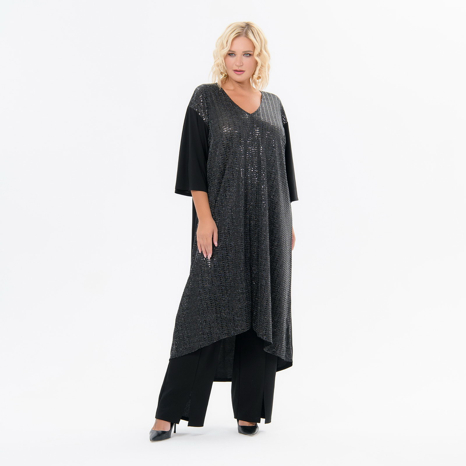 Туника удлиненная асимметричная, черная, перед с блеском