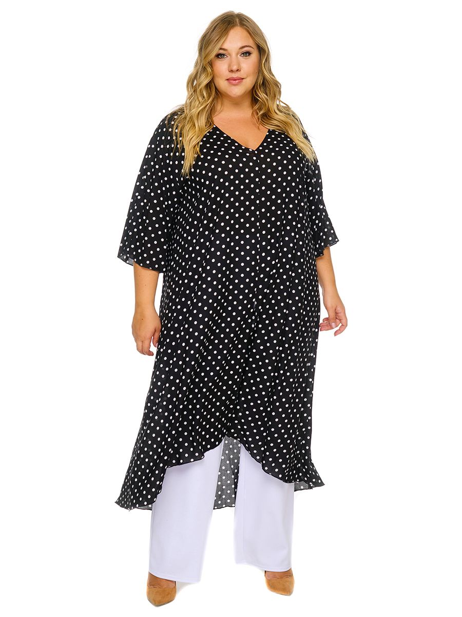 Легкая удлиненная туника с разрезом спереди и широкими рукавами из штапеля. Прекрасно подойдет к летнему образу, составив отличный комплект с джинсами, шортами или брюками. Также можно применять как пляжную тунику.