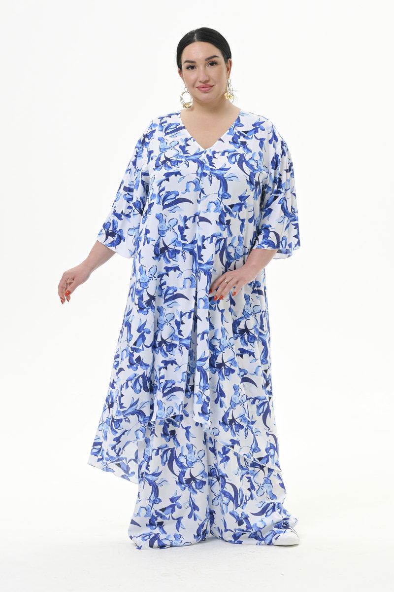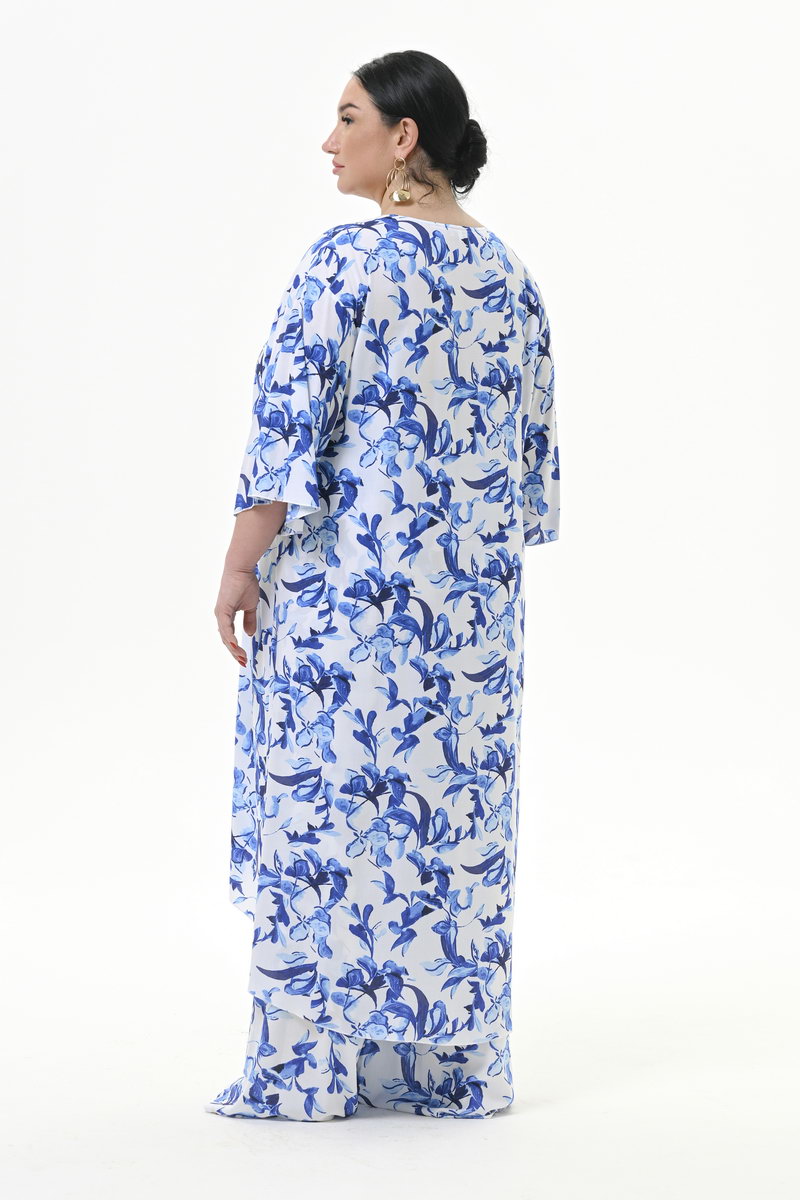 Туника удлиненная асимметричная, штапель, принт "синяя роспись"