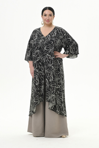 Легкая удлиненная туника с разрезом спереди и широкими рукавами из штапеля. Прекрасно подойдет к летнему образу, составив отличный комплект с джинсами или брюками. Также можно применять как пляжную тунику.