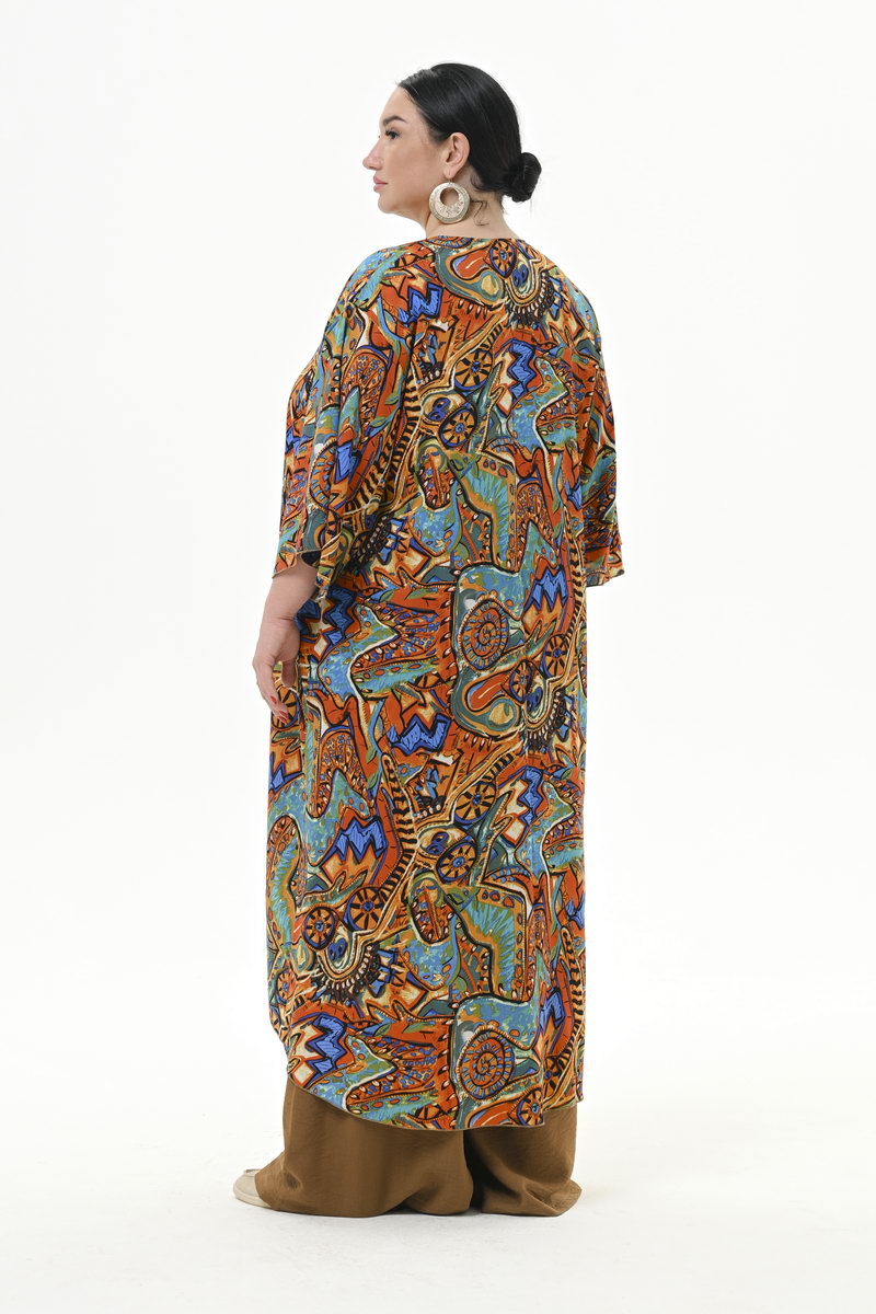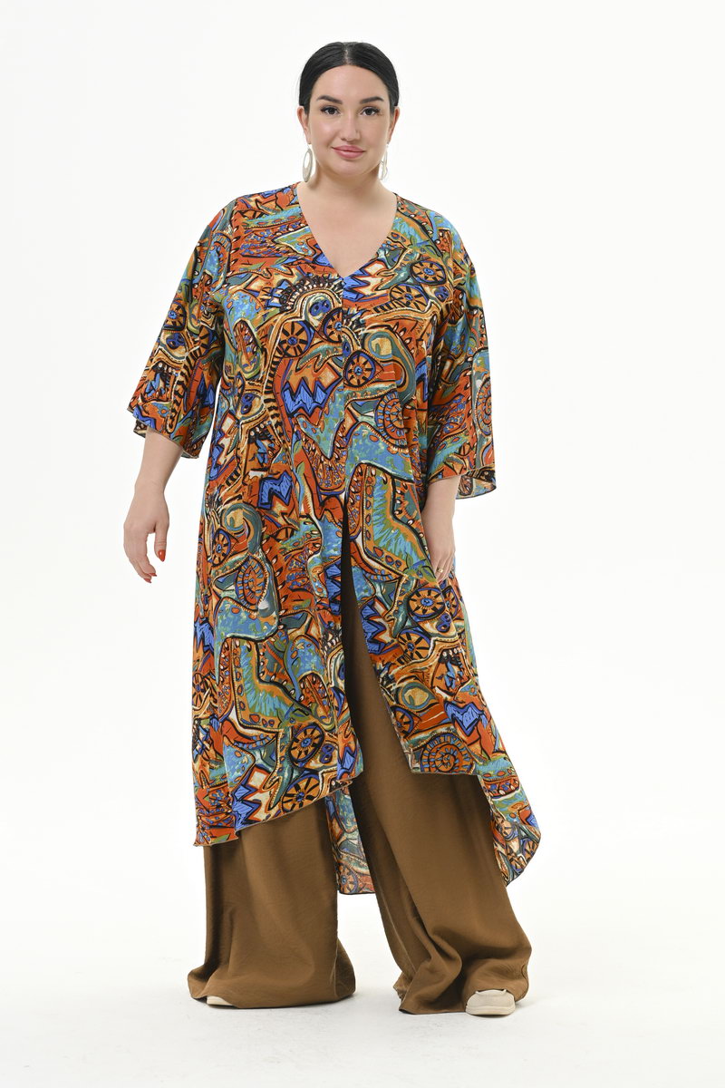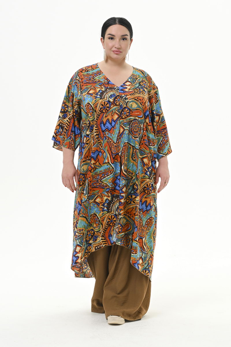 Туника удлиненная асимметричная, штапель, принт "яркая абстракция"