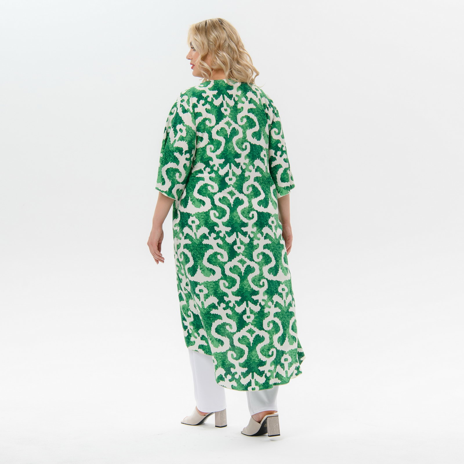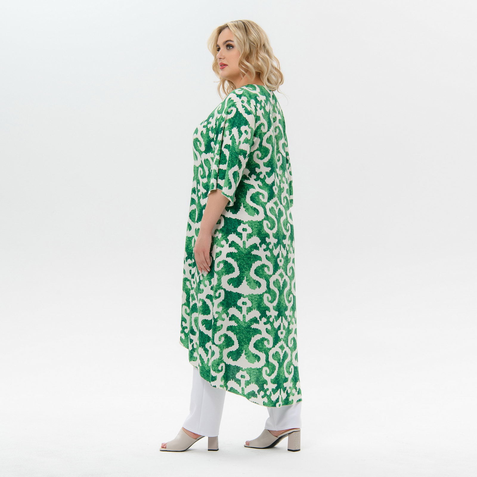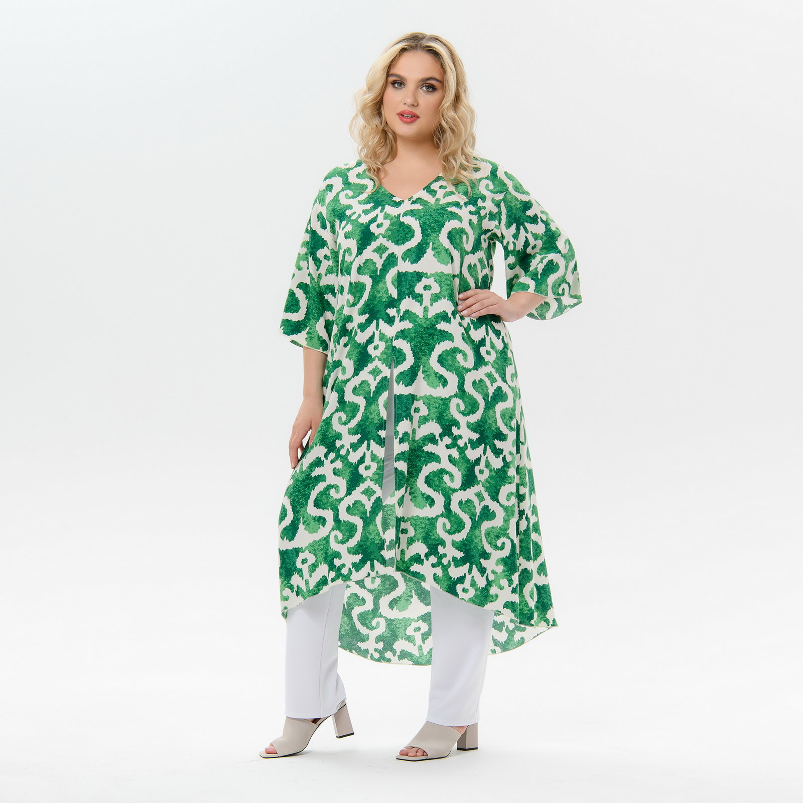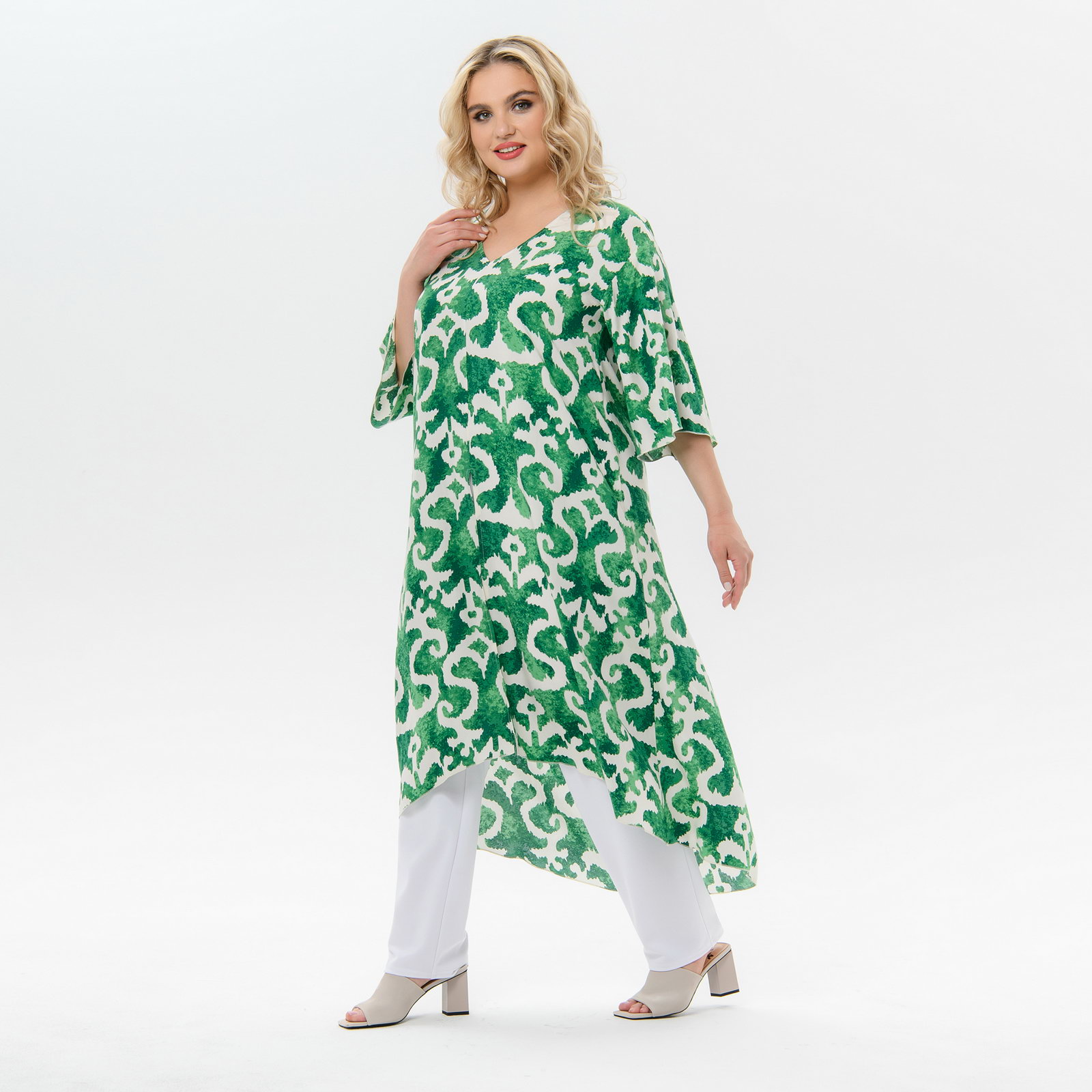 Туника удлиненная асимметричная, штапель, принт "зеленая абстракция"