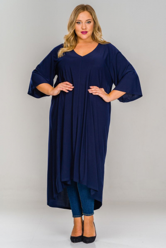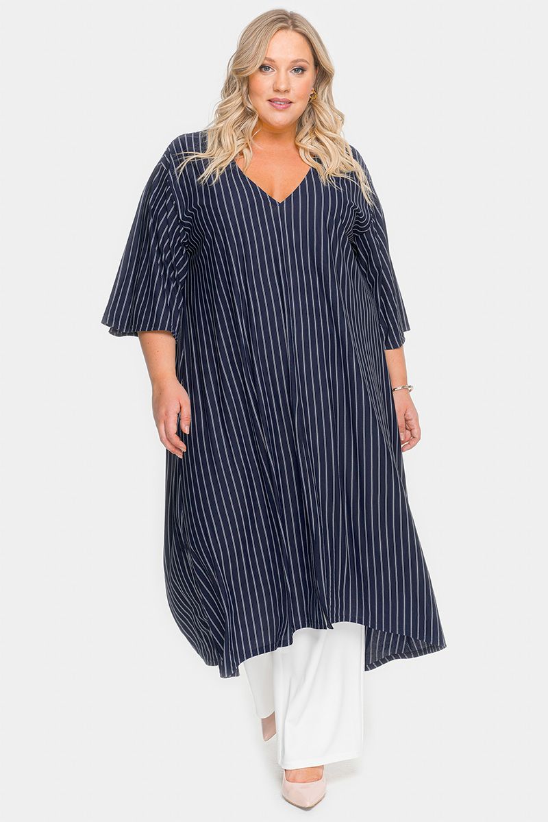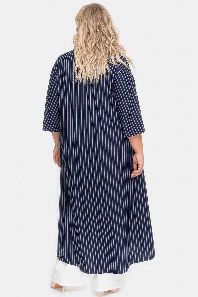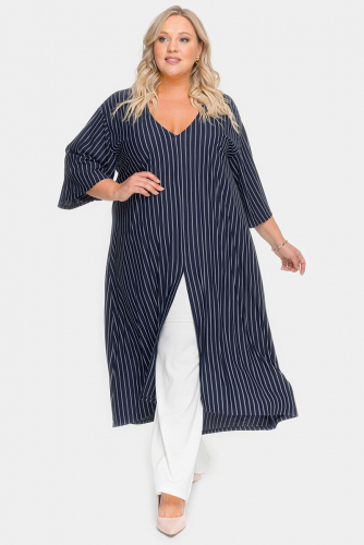 Туника удлиненная асимметричная, темно-синяя в полоску