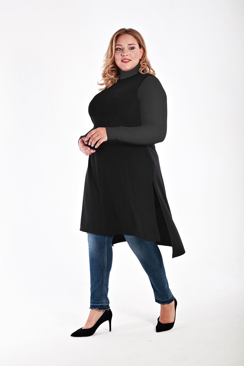 Туника удлиненная с разрезами, черная