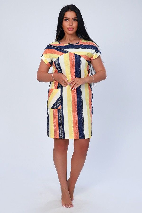 Ткань: кулирка; Состав: 100% хлопок; Сезонность: зима, весна, лето, осень; Рукав: короткий рукав; Стиль: домашний, пляжный, повседневный; Застежка: без застежки; Карман: с карманами; Производство: г. Иваново, швейное производство НАТАЛИ; Тип изделия: туники; Цвет: желтый