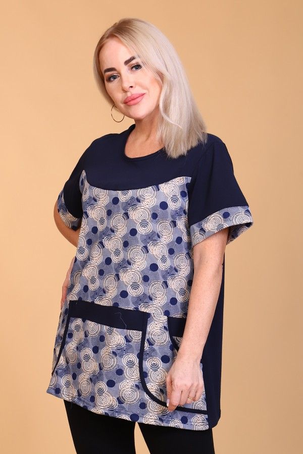 Ткань: кулирка; Состав: 100% хлопок; Сезонность: весна, лето, осень; Рукав: короткий рукав; Стиль: повседневный; Застежка: без застежки; Карман: с карманами; Производство: г. Иваново, швейное производство НАТАЛИ; Тип изделия: туники; Цвет: голубой