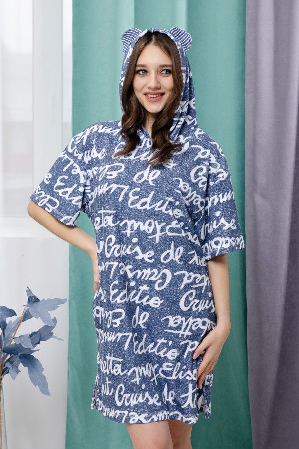 Ткань: махра; Состав: хлопок 80%, п/э 20%; Сезонность: зима, весна, лето, осень; Рукав: короткий рукав; Стиль: домашний, молодежный; Застежка: без застежки; Карман: без карманов; Производство: г. Иваново, швейное производство НАТАЛИ; Тип изделия: туники; Цвет: синий