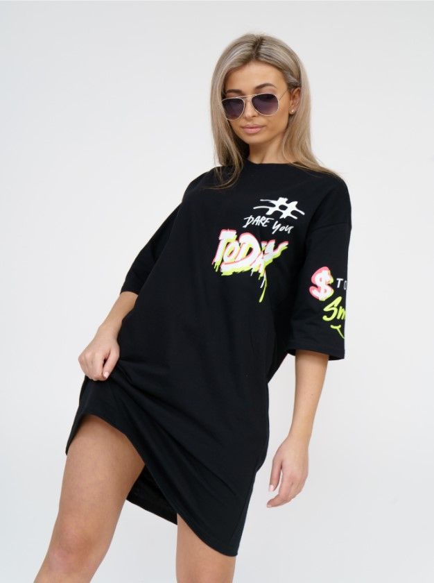 Ткань: кулирка; Состав: 100% хлопок; Сезонность: весна, лето; Рукав: короткий рукав; Стиль: молодежный, повседневный; Застежка: без застежки; Карман: без карманов; Производство: г. Иваново; Тип изделия: туники; Цвет: черный