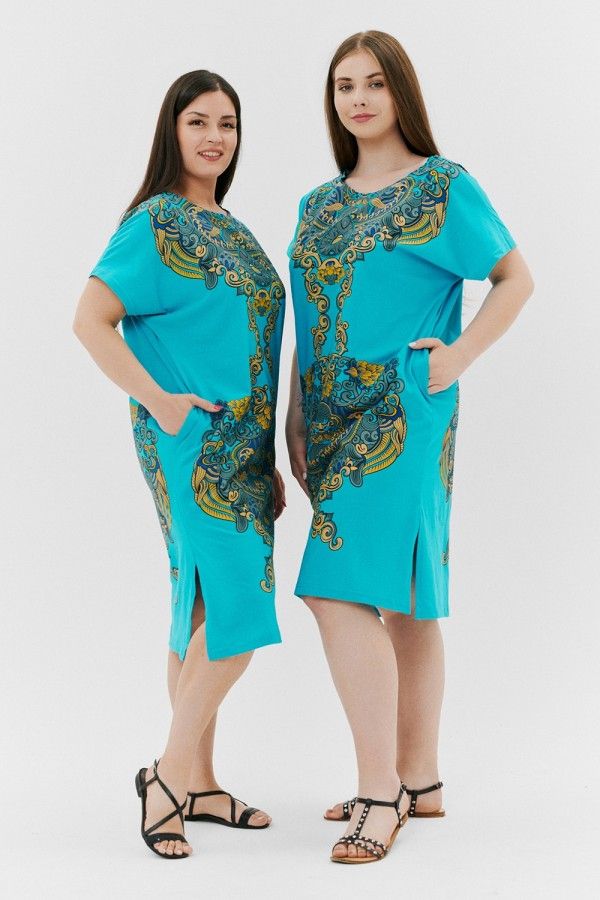 Ткань: кулирка; Состав: хлопок 100%; Сезонность: лето; Рукав: короткий рукав; Стиль: повседневный; Застежка: без застежки; Карман: с карманами; Производство: г. Иваново, швейное производство НАТАЛИ; Тип изделия: туники; Цвет: бирюзовый