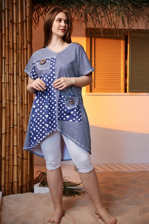 Ткань: кулирка; Состав: 100% хлопок; Сезонность: лето; Рукав: короткий рукав; Стиль: домашний; Застежка: без застежки; Карман: с карманами; Производство: г. Иваново, швейное производство НАТАЛИ; Тип изделия: туники; Цвет: синий