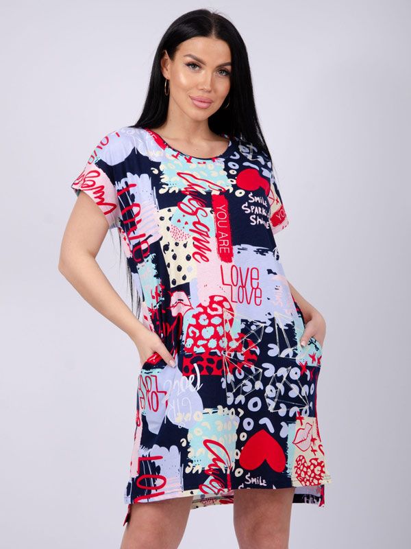 Ткань: кулирка; Состав: 100% хлопок; Сезонность: лето; Рукав: короткий рукав; Стиль: повседневный; Застежка: без застежки; Карман: с карманами; Производство: г. Иваново, ООО "Малина"; Тип изделия: туники; Цвет: разноцветный