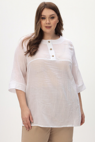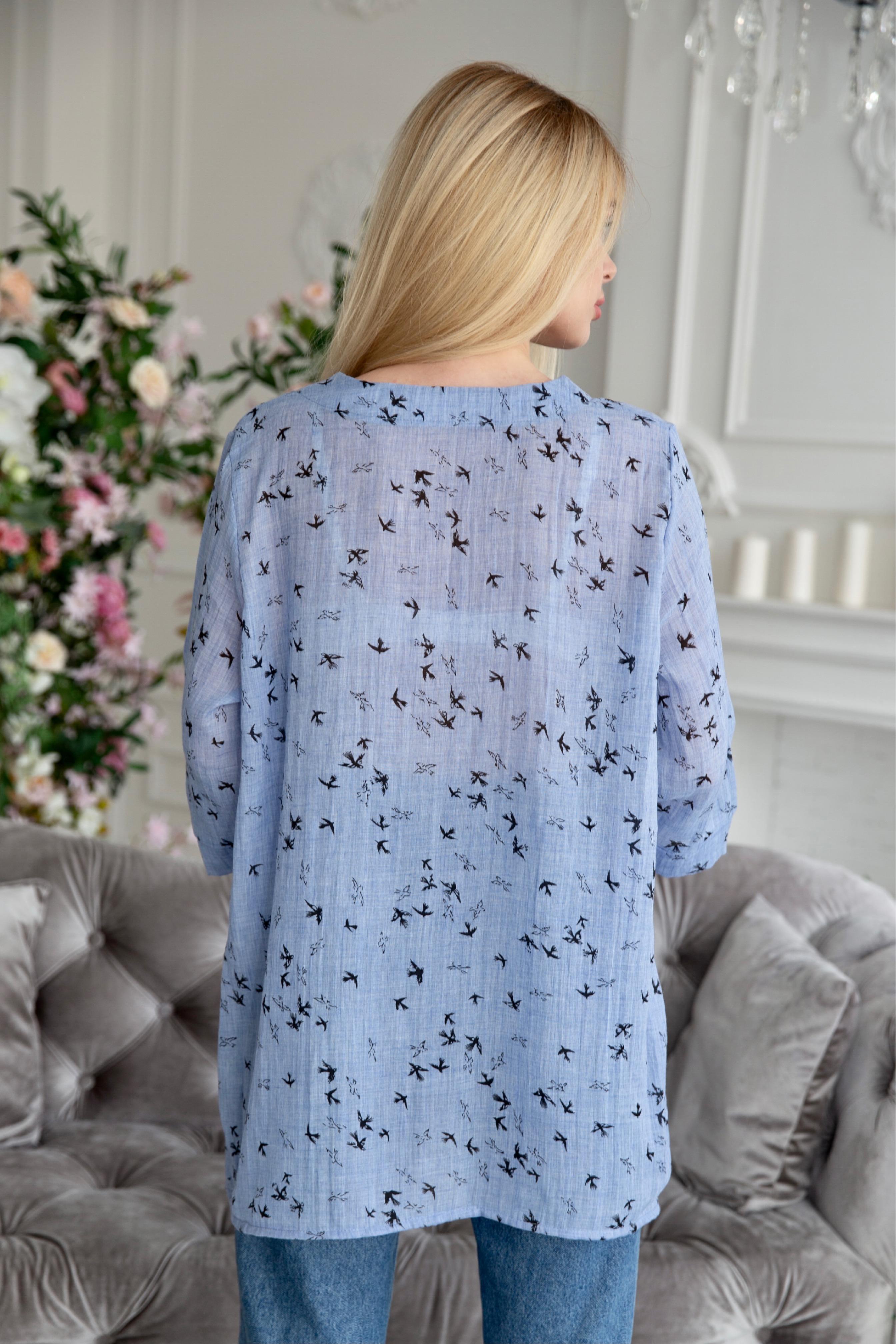 Нежная женская туника выполнена из тонкого и невесомого натурального хлопка, который позволяет чувствовать себя комфортно в летний зной. Модель украшает удобная застежка в виде пуговиц, свободный крой. Туника отлично впишется как в городской, так и в пляжный стиль. Средняя длинна и рукав «три четверти» лучше всего подходят для отдыха.