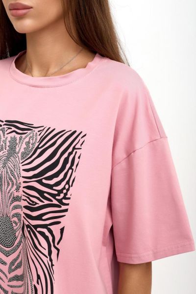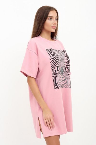 Ткань: кулирка с лайкрой; Состав: хлопок 92%, лайкра 8%; Сезонность: лето; Рукав: короткий рукав; Стиль: домашний, молодежный, пляжный, повседневный; Застежка: без застежки; Карман: без карманов; Производство: г. Иваново; Тип изделия: туники; Цвет: розовый