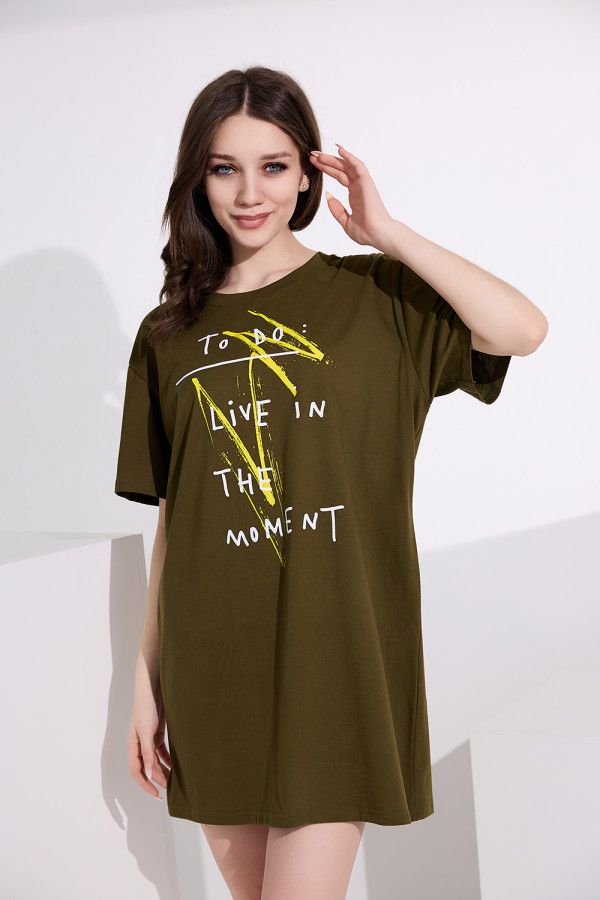 Ткань: кулирка; Состав: 100% хлопок; Сезонность: зима, весна, лето, осень; Рукав: короткий рукав; Стиль: молодежный, повседневный; Застежка: без застежки; Карман: без карманов; Производство: г. Иваново, швейное производство НАТАЛИ; Тип изделия: туники; Цвет: хаки