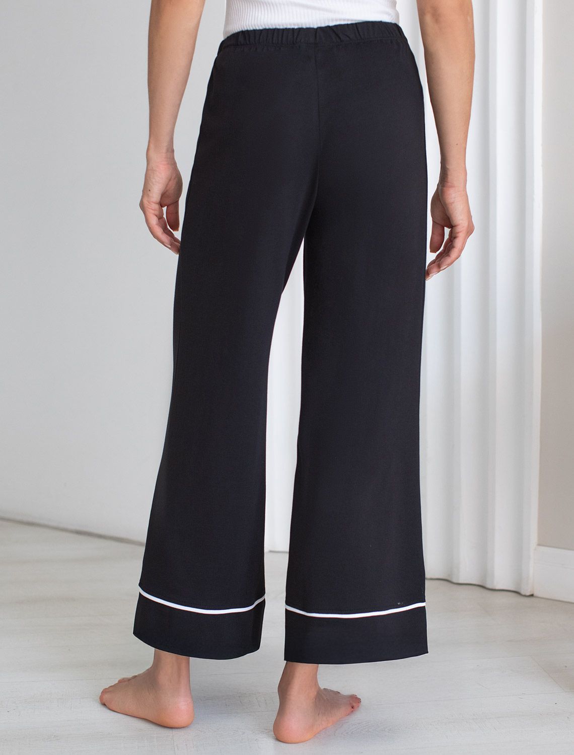 Контрастный кант по низу добавляет стильный акцент и возможность сочетать с белыми футболками нашего бренда. Эти брючки идеально подойдут тем, кто ищет стильное решение с учетом комфорта и удобства, в них вы будете женственны и утонченны даже в домашней обстановке.
