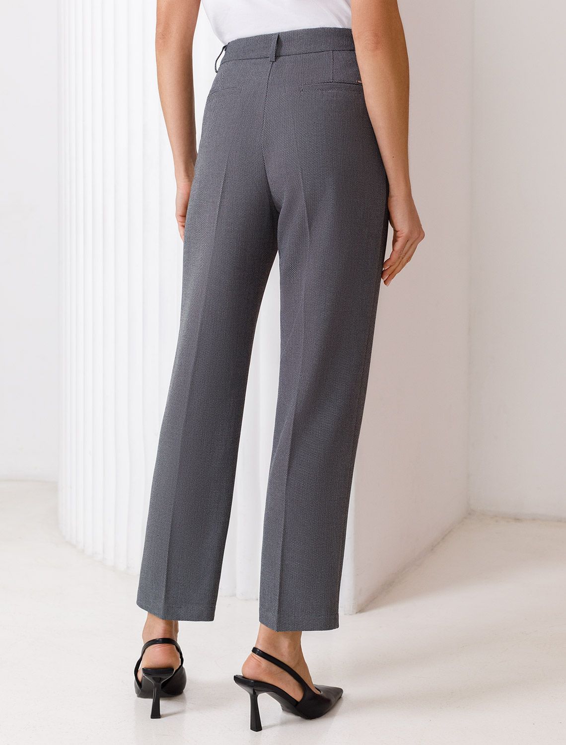 Укороченные брюки из фактурной черно-серой поливискозы с эластаном