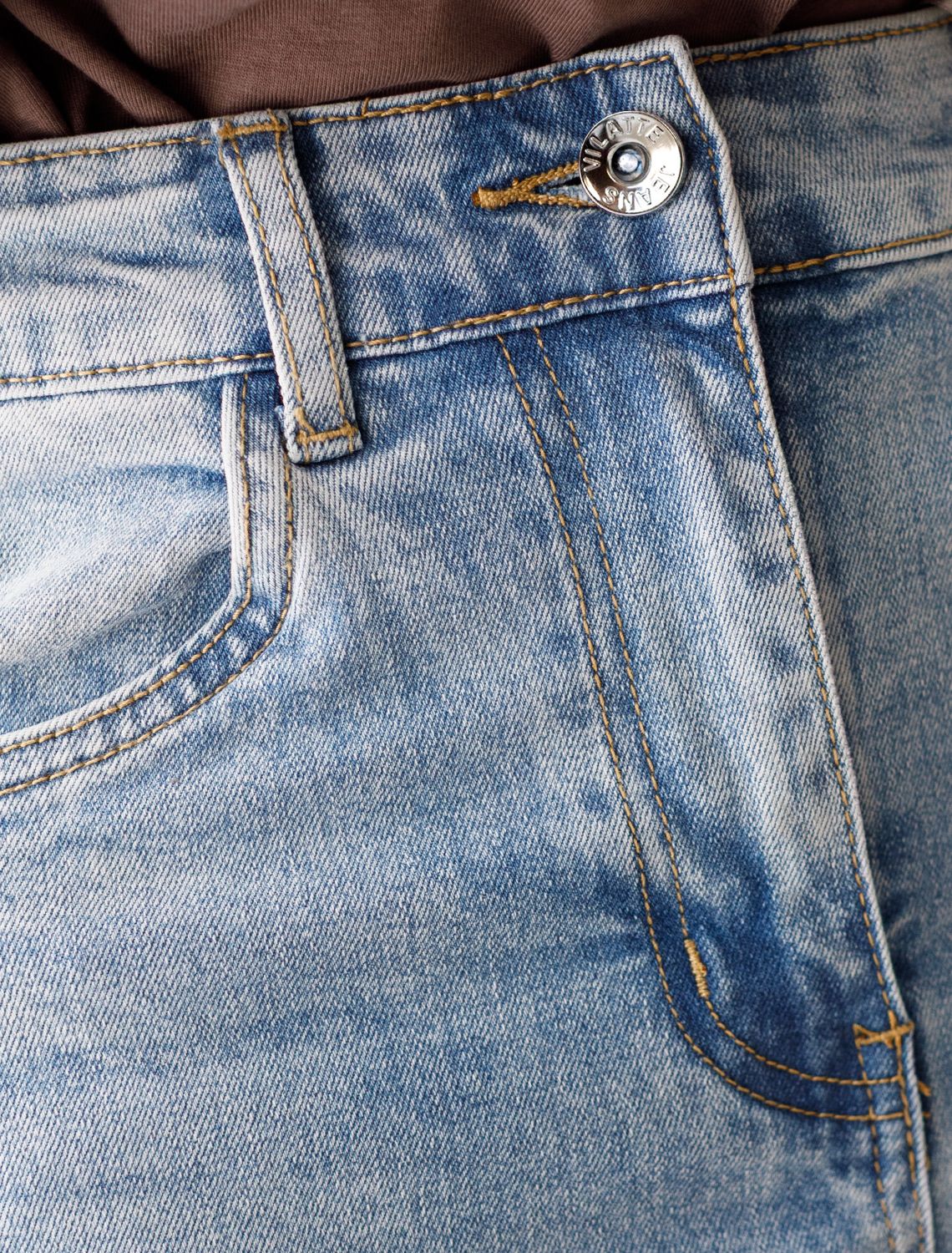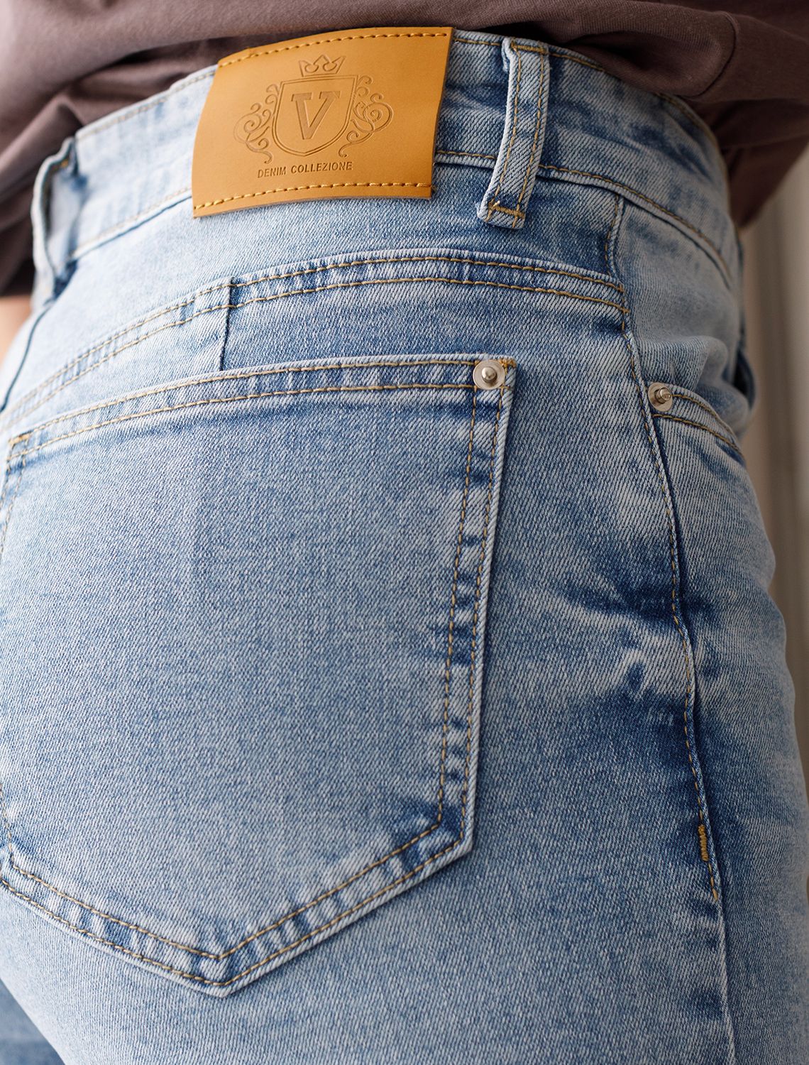 Укороченные джинсы c декоративной стиркой из эластичного плотного денима D54.324 голубой