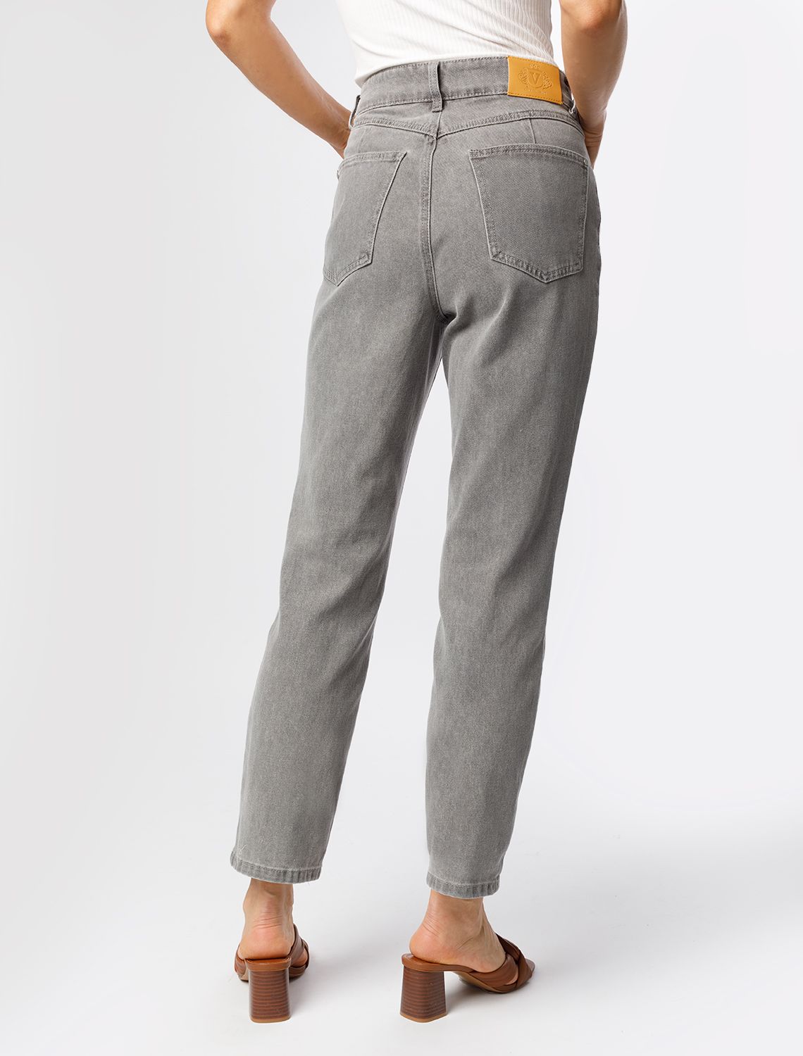 Джинсы выполнены из эластичного денима. Укороченная, плотно прилегающая модель гармонично дополнит любой образ с рубашкой и жакетом, футболкой и лонгсливом. Изделие очень хорошо тянется и не ограничивает движения. На поясе брендированный патч. серый