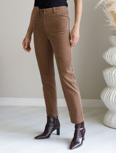 Вельветовые брюки женские зауженные в фасоне мом слим станут идеальным дополнением к теплому образу осенью и зимой. Они выполнены из мягкой хлопковой эластичной ткани, которая обеспечивает комфорт и защищает от холода.