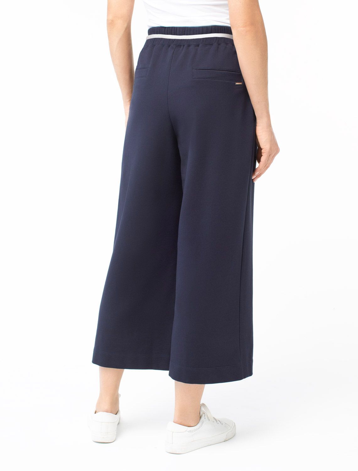 Укороченные широкие брюки из эластичного футера двухнитки D44.141 т.синий