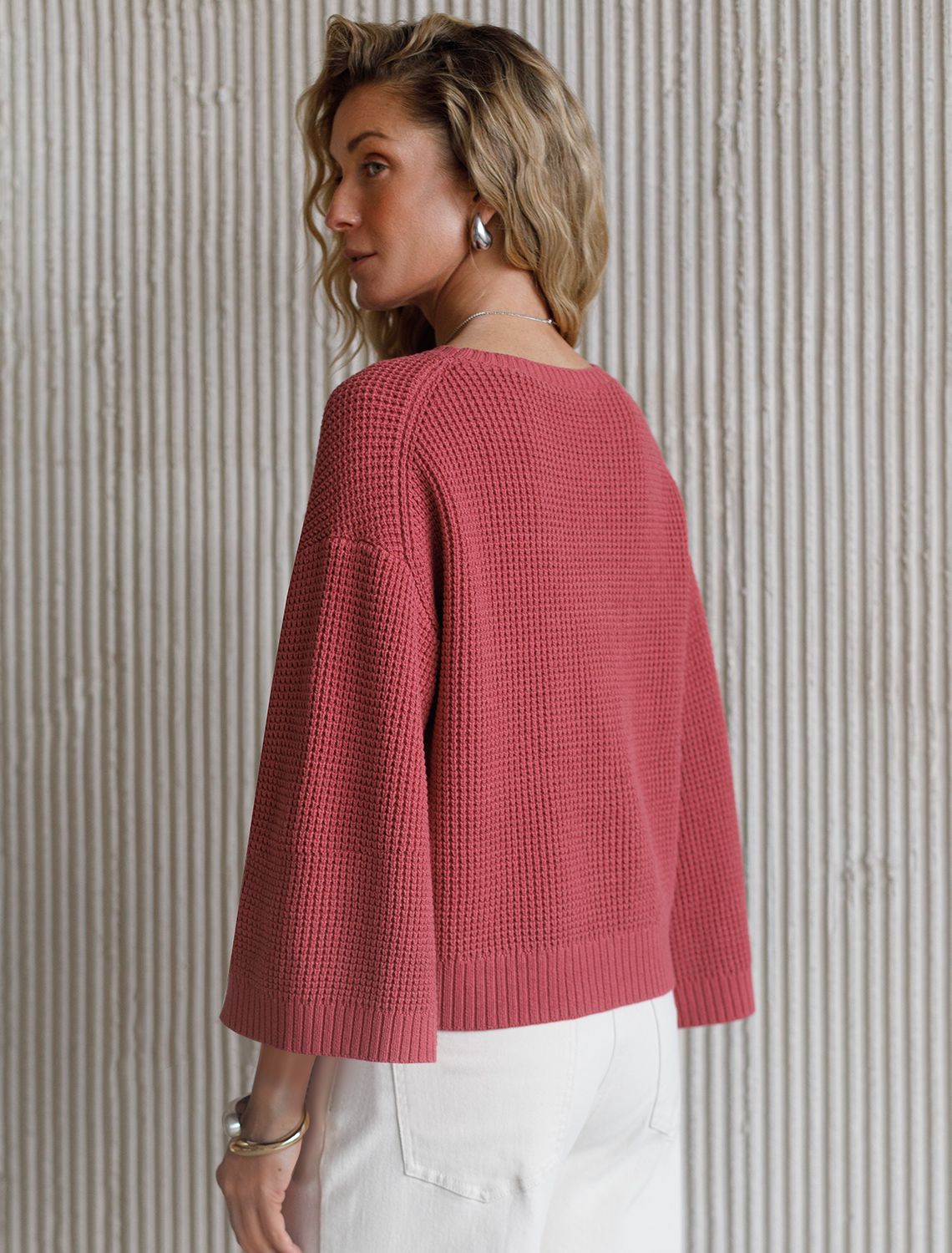 Стильный укороченный джемпер пыльно-розового цвета создан для тех, кто ценит современный образ и комфорт. Свободный крой подчеркивает легкость и позволяет чувствовать себя уютно в любой ситуации. Рельефная вязка в виде оригинального узора "шашечки" добавляет джемперу выразительности. Благодаря натуральному хлопку повседневный джемпер обеспечивает комфорт даже в жаркие дни: хлопок позволяет коже дышать и поддерживает оптимальный микроклимат. А акрил в составе придает мягкость, отличную цветостойкость, а также гипоаллергенность и устойчивость к деформации, что делает джемпер легким в уходе. Круглый ворот и спущенная линия плеча добавляют образу аккуратности и расслабленности. Широкие рукава создают воздушность и делают силуэт особенно женственным. Такой джемпер легко сочетать с широкими и узкими низами для создания повседневного или более нарядного ансамбля. Джемпер отлично подойдет для прохладных весенних и летних дней благодаря плотности материала, а также станет удачным решением для многослойных луков. Вязка подчеркивает индивидуальность вещи и привлекает внимание к деталям вашего стиля.
