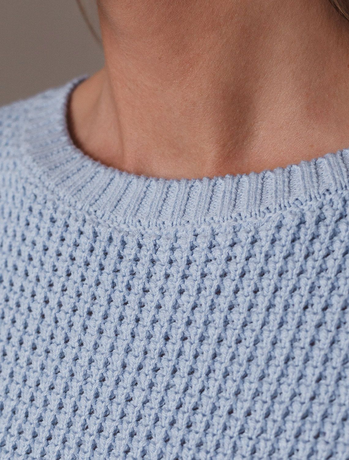 Стильный укороченный джемпер светло-голубого цвета создан для тех, кто ценит современный образ и комфорт. Свободный крой подчеркивает легкость и позволяет чувствовать себя уютно в любой ситуации. Рельефная вязка в виде оригинального узора "шашечки" добавляет джемперу выразительности. Благодаря натуральному хлопку повседневный джемпер обеспечивает комфорт даже в жаркие дни: хлопок позволяет коже дышать и поддерживает оптимальный микроклимат. А акрил в составе придает мягкость, отличную цветостойкость, а также гипоаллергенность и устойчивость к деформации, что делает джемпер легким в уходе. Круглый ворот и спущенная линия плеча добавляют образу аккуратности и расслабленности. Широкие рукава создают воздушность и делают силуэт особенно женственным. Такой джемпер легко сочетать с широкими и узкими низами для создания повседневного или более нарядного ансамбля. Джемпер отлично подойдет для прохладных весенних и летних дней благодаря плотности материала, а также станет удачным решением для многослойных луков. Вязка подчеркивает индивидуальность вещи и привлекает внимание к деталям вашего стиля.