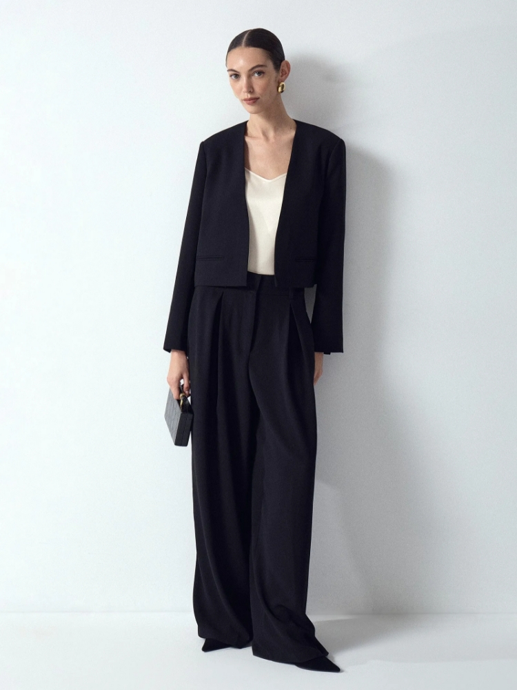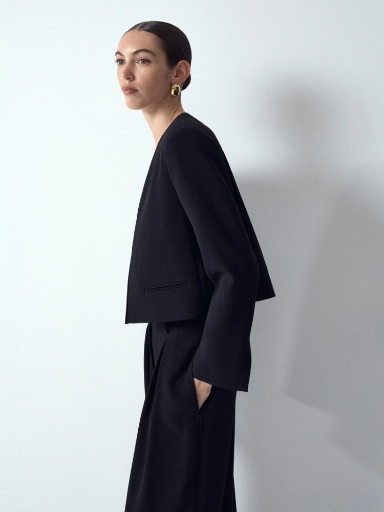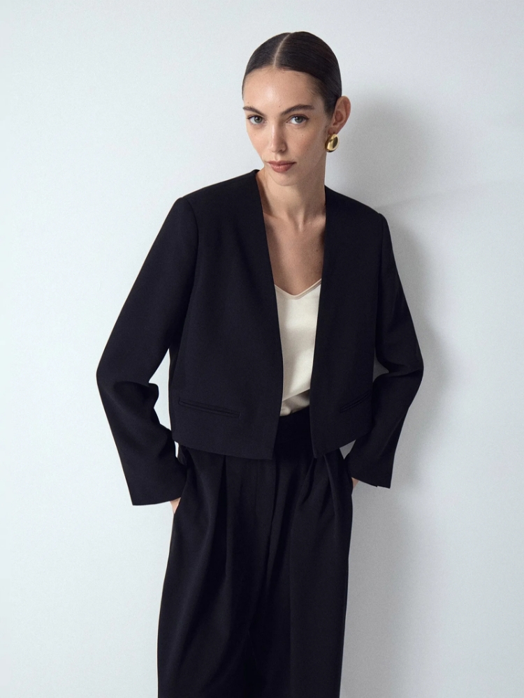 Креповый жакет-болеро без застежек привлекает своей элегантностью и необычными деталями. Главный акцент сделан на рукавах: шлица придаёт образу лёгкость. Жакет дополнен изящными карманами с листочками. Модель будет прекрасно сочетаться с любым лаконичным платьем-комбинацией или базовым платьем-футляром, добавляя образам лёгкую ноту театральности или вечернего шика. Благодаря лаконичному дизайну он легко вписывается в гардероб, дополняя как торжественные, так и повседневные образы. Незаменим, если в арсенале любимых вещей много открытых топов на тонких бретелях и комбинаций с открытой спиной