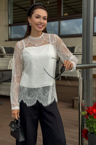 Горловина оформлена воротником пиджачного типа.