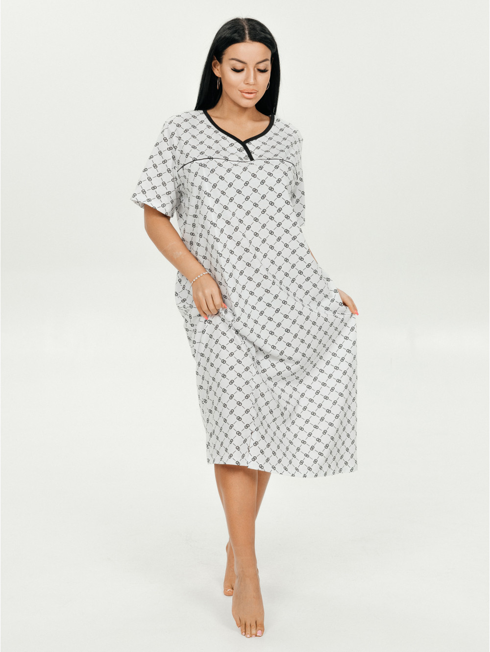 Сорочка полуприлегающего силуэта с коротким втачным рукавом.