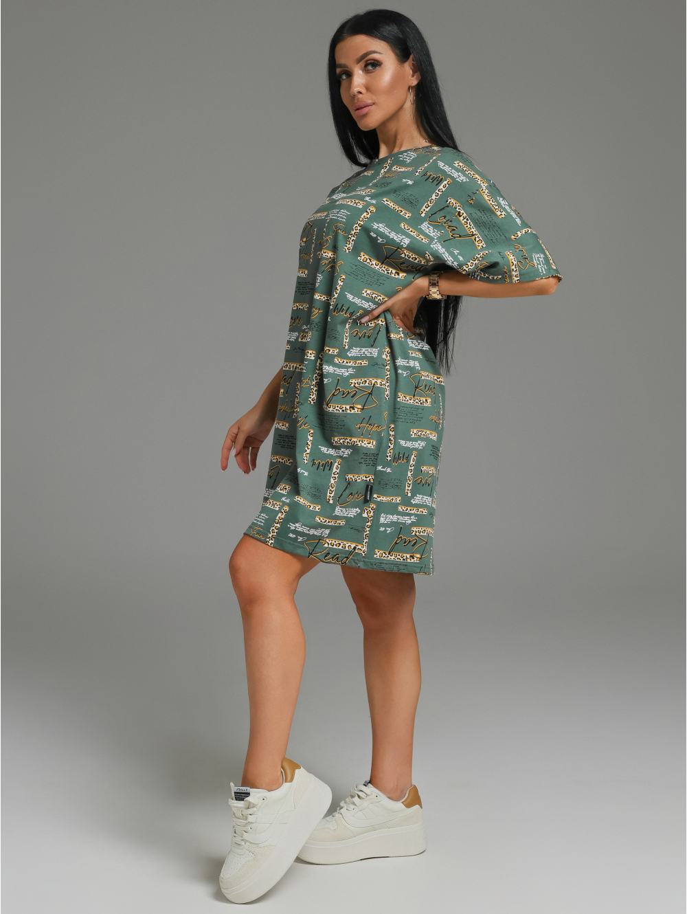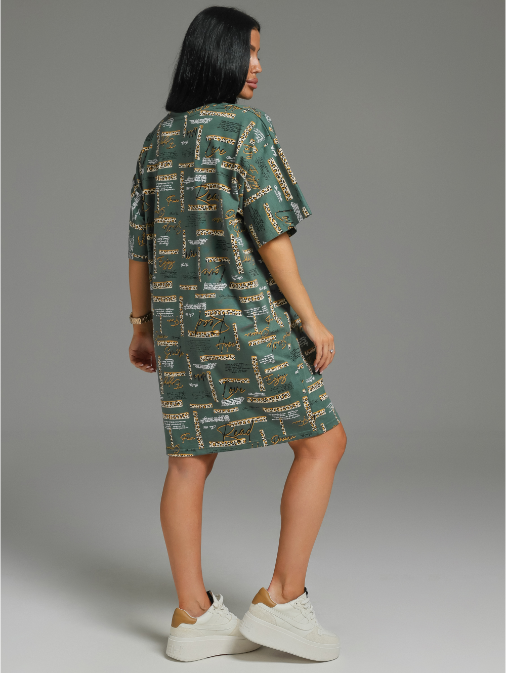 Платье-футболка oversize с коротким спущенным втачным рукавом.