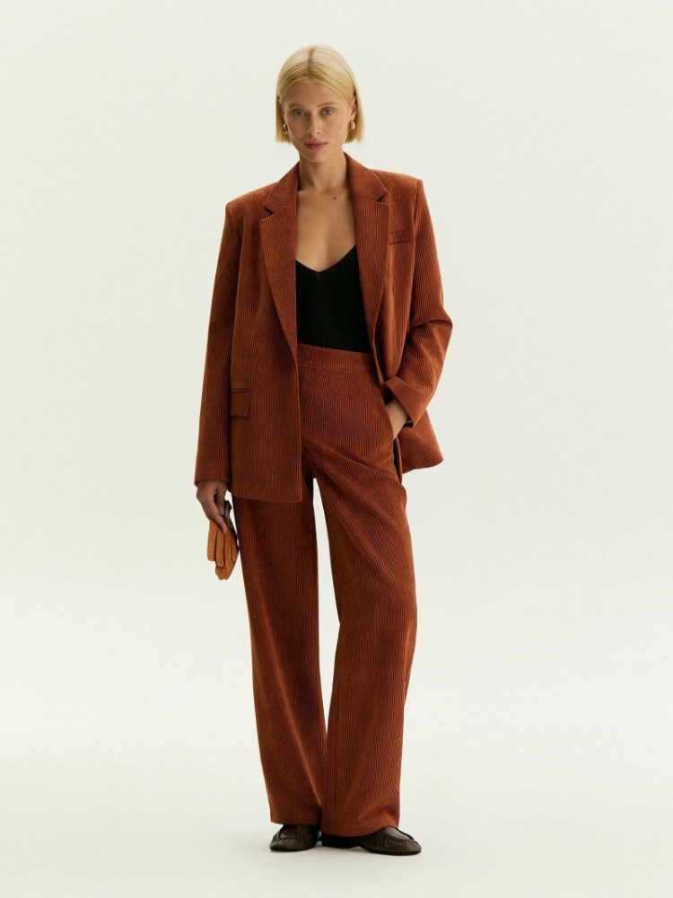 Вельветовые брюки прямого кроя на резинке , 80% полиэстер, 20% вискоза ,