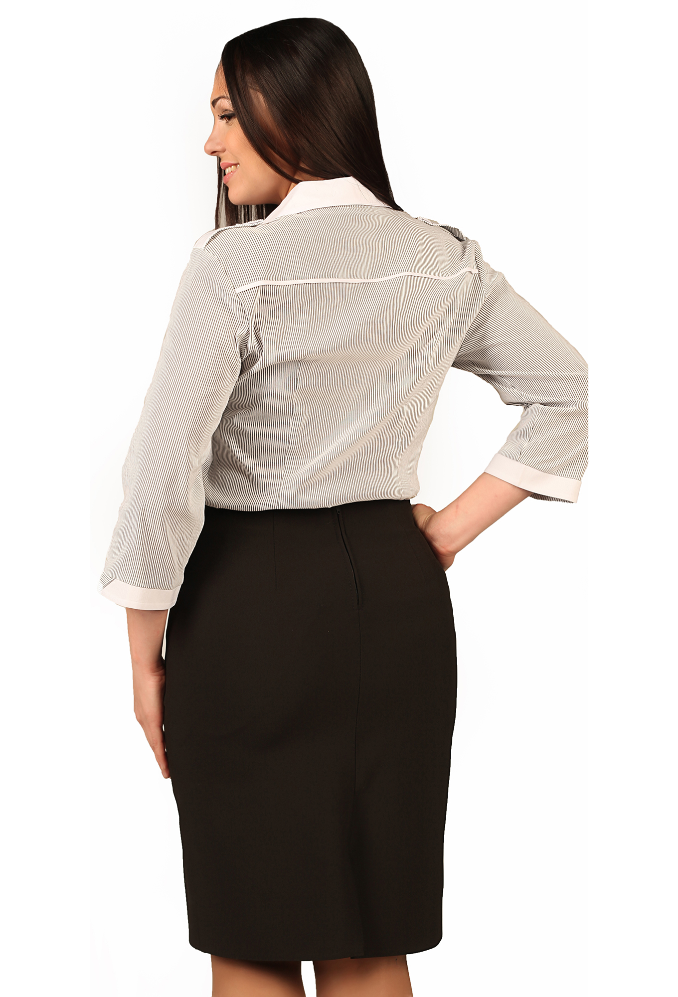 Классическая юбка зауженного покроя, универсального цвета. Модель на подкладе. Верх без пояса, на внутренней обтачке. Полочка выполнена резным кроем, низ декорирован оригинальной складкой и пуговицами. Сзади юбки расположена потайная застежка-молния и удобная шлица.