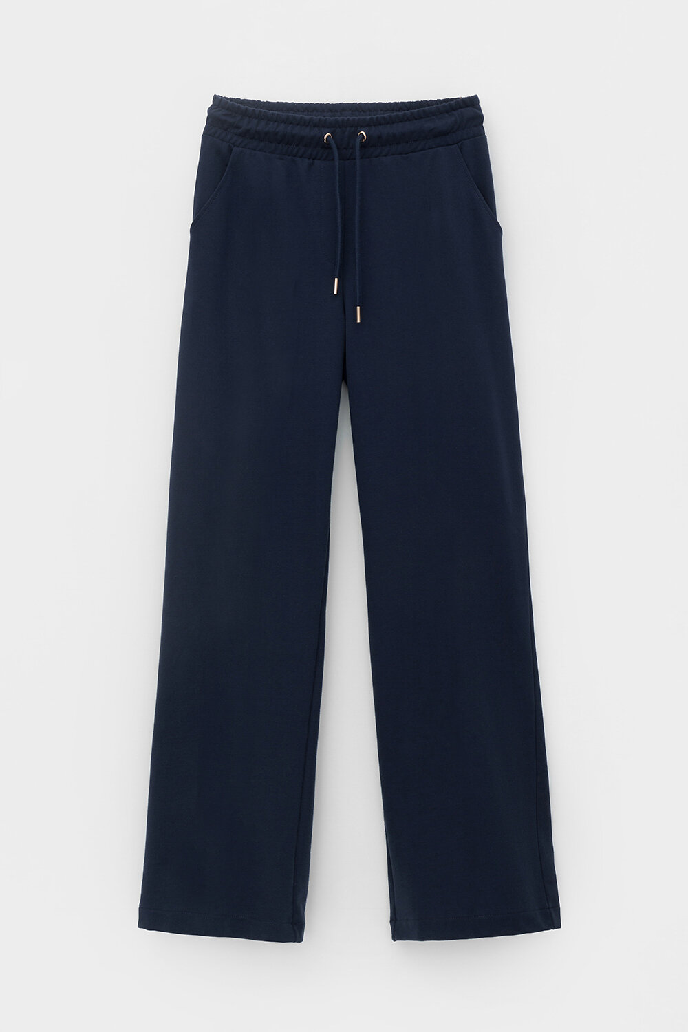 Брюки прямого кроя и боковыми карманами из мягкого петельчатого футера с добавлением эластана. Пояс со шнурком позволяет регулировать посадку. Идеальный и комфортный вариант на каждый день.