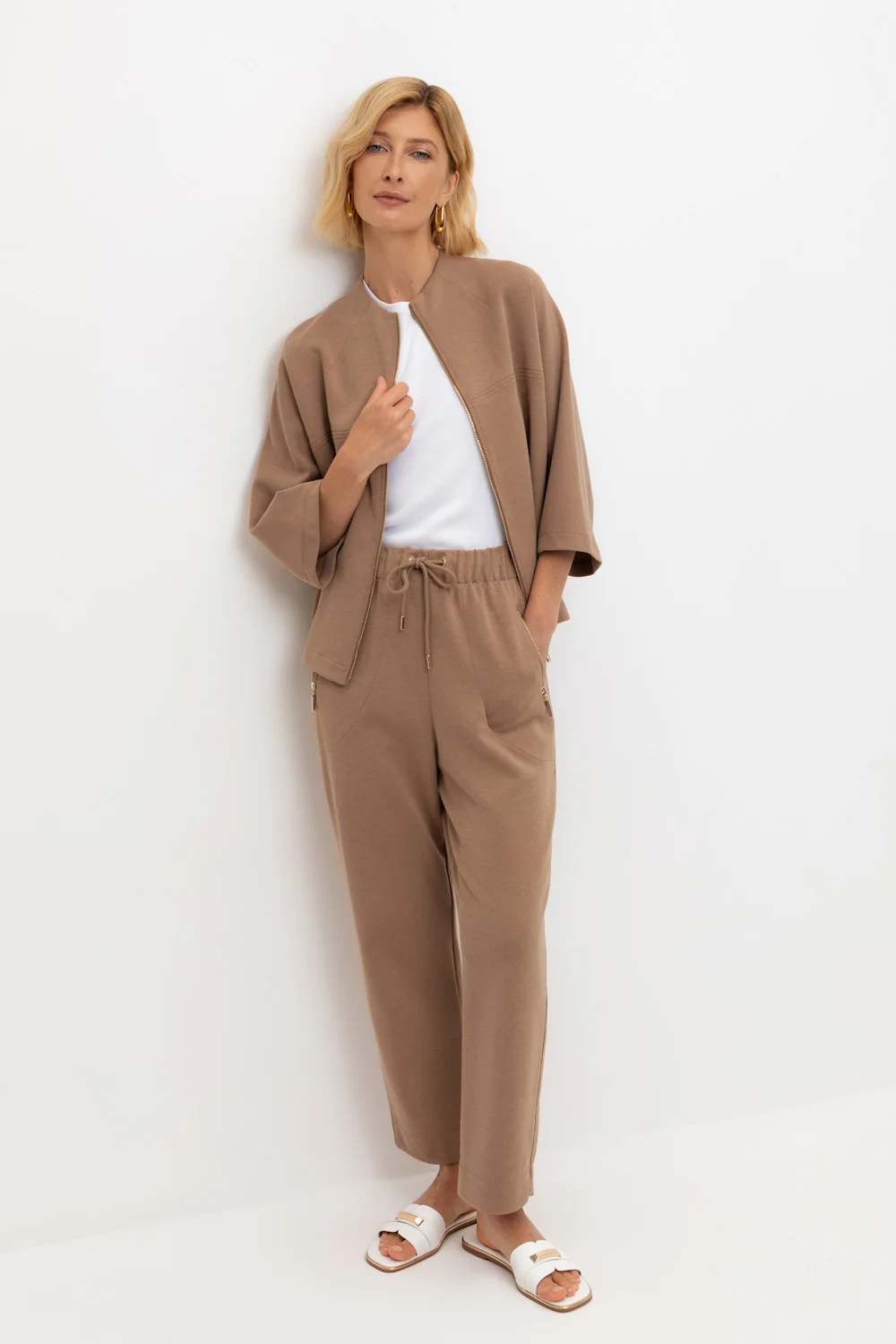 Брюки из высококачественного трикотажного полотна. За счет фактуры переплетения и специальных обработок сохраняют силуэт и форму. Хлопок в составе добавляет комфорт при носке. Эластичный пояс регулируемый шнуром обеспечивает идеальную посадку. В сочетании с жакетом из этой коллекции вы создадите расслабленный образ для летних дней.