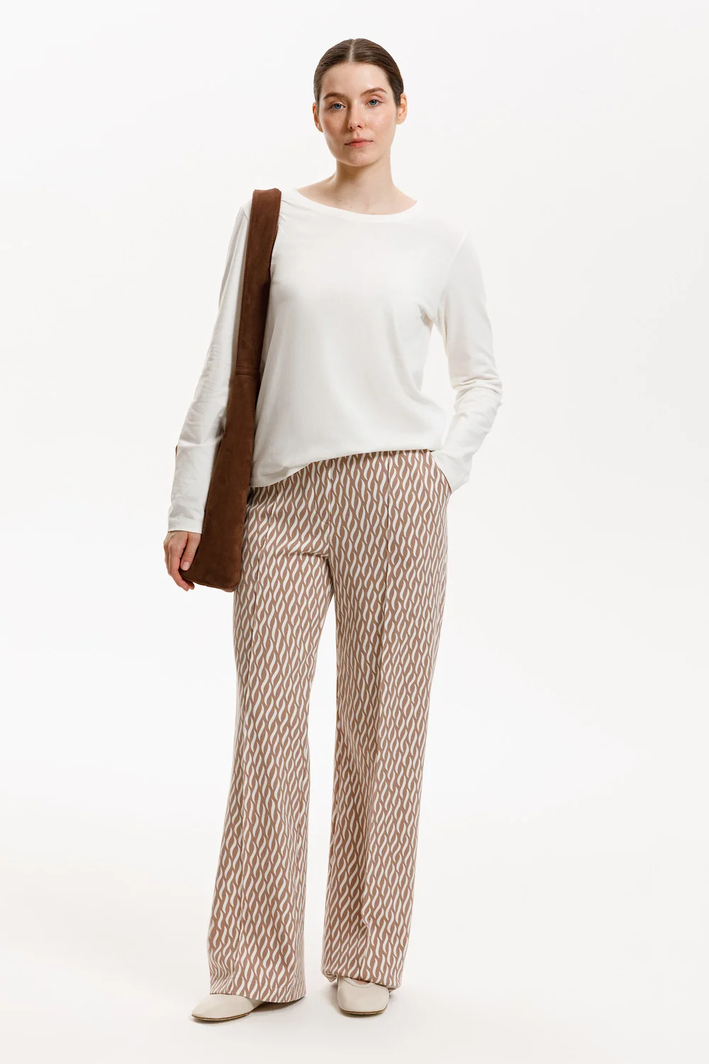 Брюки из премиального трикотажа DOUBLE FACE. За счет фактуры переплетения и специальных обработок сохраняют силуэт и форму. По передней части брюк застрочена стрелка, которая визуально удлиняет ноги. Боковые карманы добавляют функциональности изделию, а эластичная резинка в поясе комфорт при носке. В сочетании с жакетом из этой коллекции вы создадите элегантный образ для летних дней.