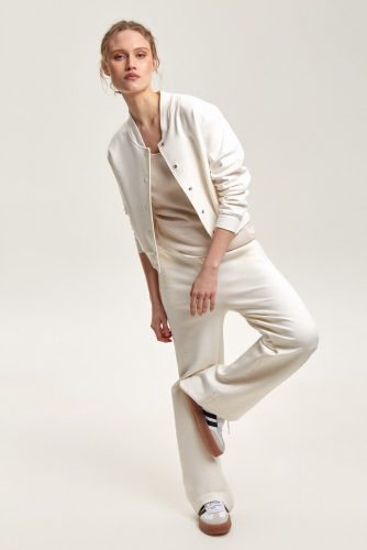 Трикотажные брюки со стрелками из высококачественного гребенного футера с эластаном. Незаменимая классика в летнем гардеробе.