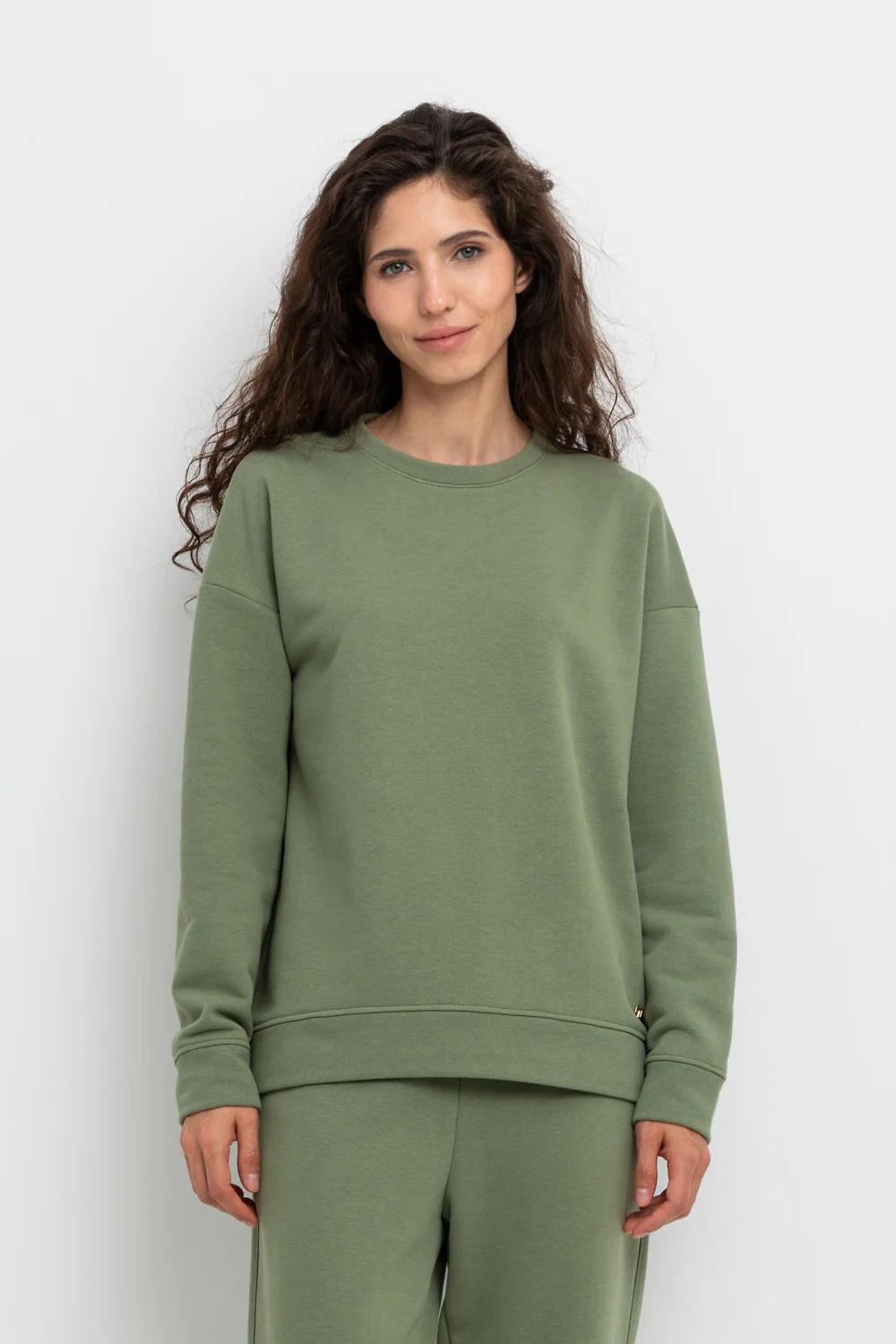 Мягкая женская толстовка из футера трехнитки. Спущенные рукава и манжеты добавляют объем.