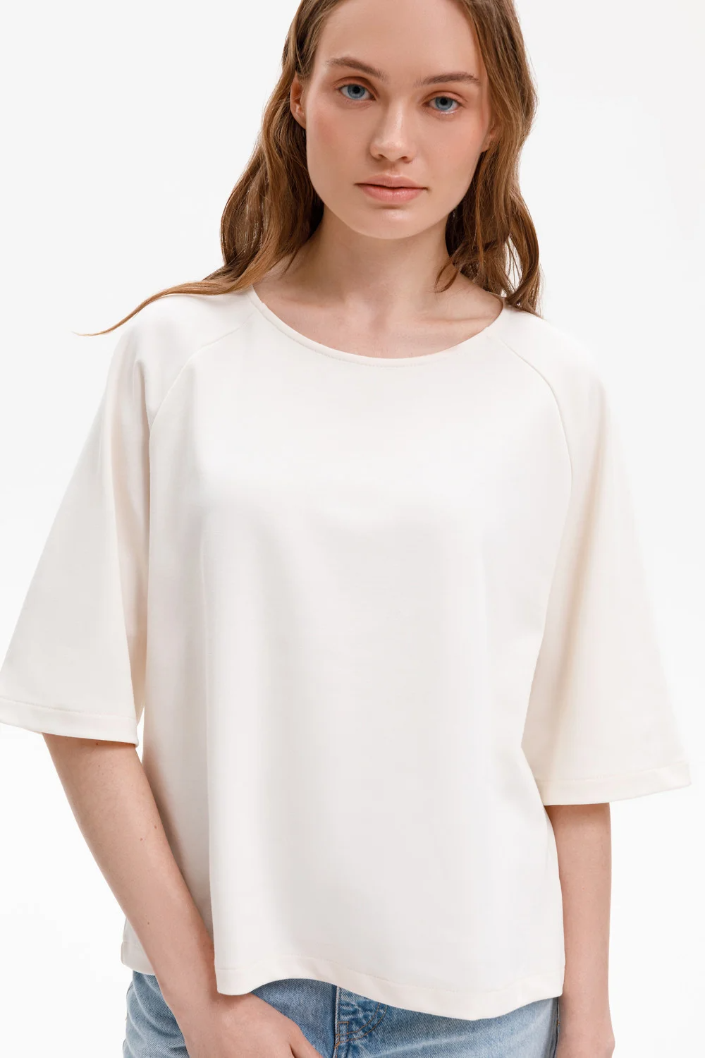 Стильный джемпер, изготовленный из премиального трикотажа DOUBLE FACE. Объемный спущенный рукав придает изделию расслабленный стиль. Мягкая и струящаяся фактура полотна за счет специальной обработки soft touch дает ощущение комфорта и легкости.