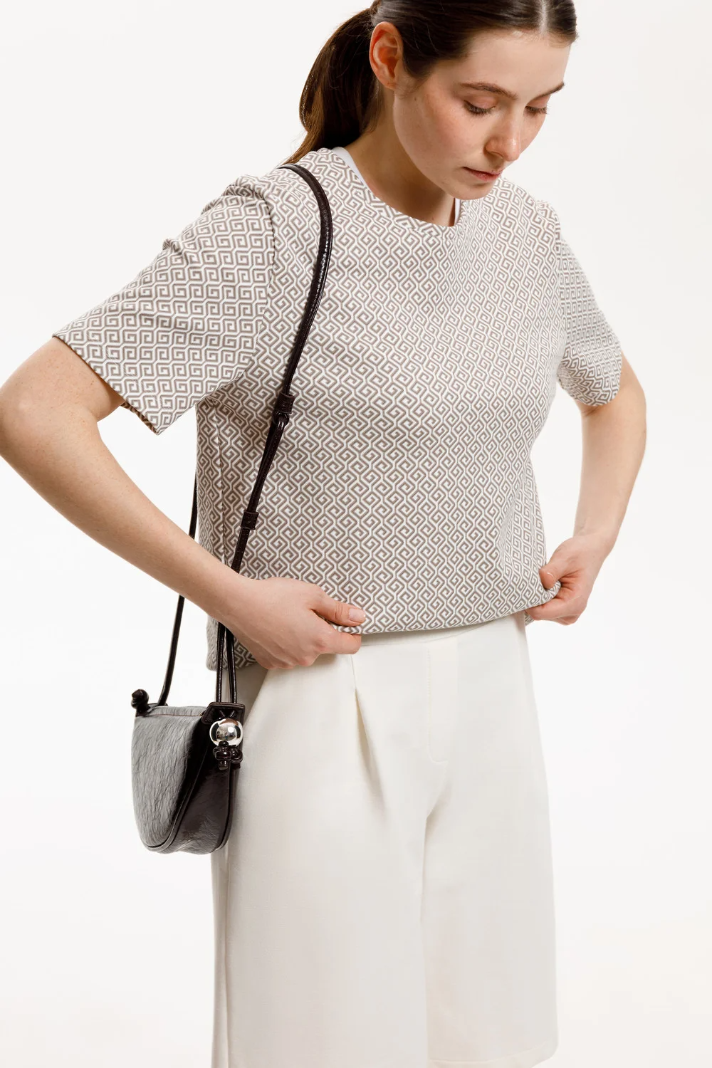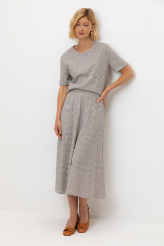 Футболка прямого силуэта, изготовленная из премиального трикотажного полотна DOUBLE FACE. Мягкий на ощупь трикотаж выполнен из высококачественной гребенной пряжи, а его графичный дизайн добавляет летнего настроения.