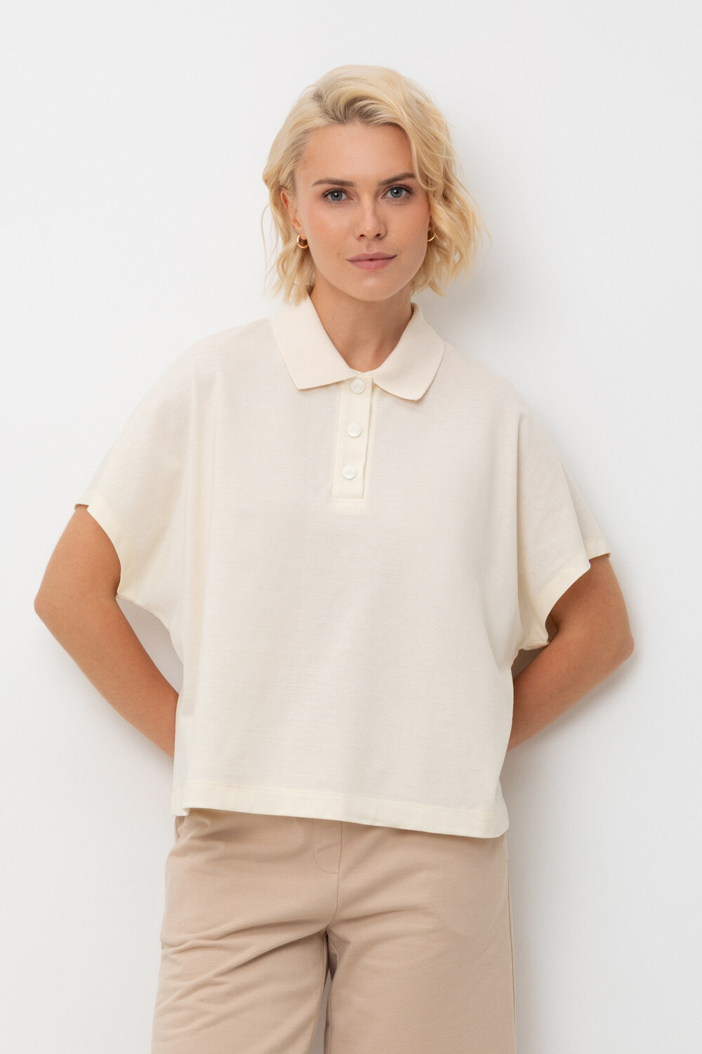 Элегантное трикотажное поло из 100% хлопка в переплетении пике. Свободные спущенные рукава придают изделию умеренный обьем. Классический вязаный воротник и планка с пуговицами являются незаменимым элементом в дизайне поло.
