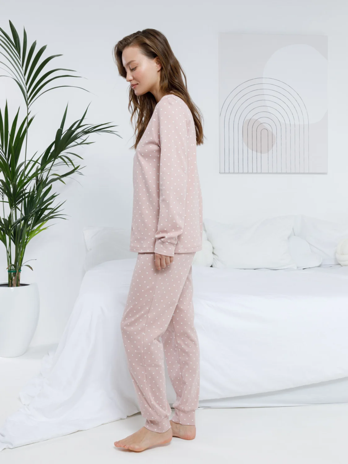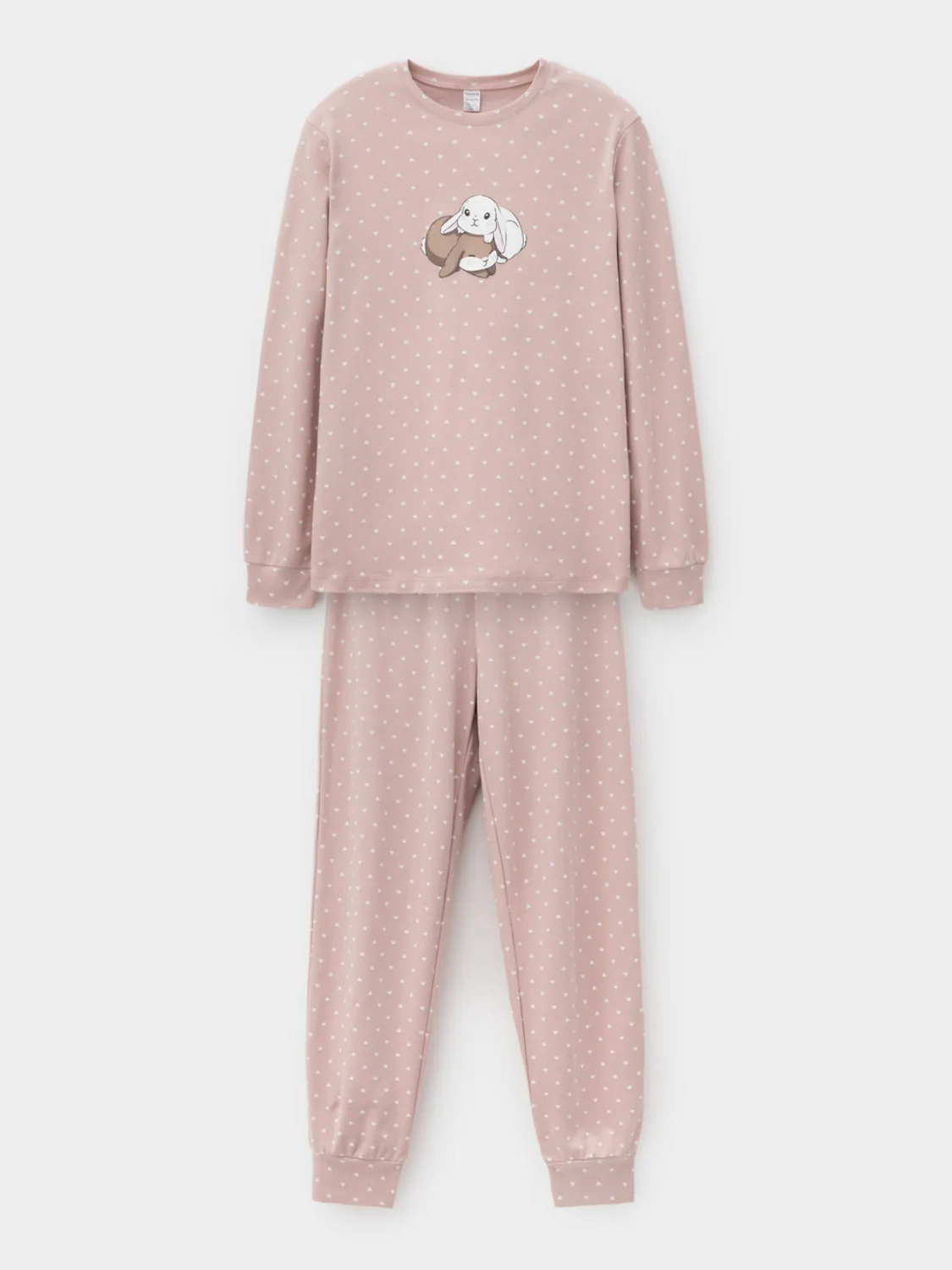 Комплект для комфортного сна и отдыха из трикотажного полотна с набивным рисунком и принтом. Джемпер с длинными втачными рукавами и брюки с мягкой эластичной резинкой в поясе, которые удобно садятся по фигуре. Гладкий материал приятен к телу, не теряет форму и позволяет коже дышать. На рукавах и по низу брюк мягкие манжеты.