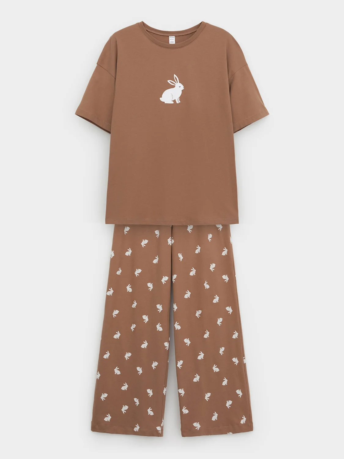 Комплект для комфортного сна и отдыха из гладкого трикотажного полотна. Футболка с короткими спущенными рукавами и прямые брюки с мягкой эластичной резинкой в поясе, которые удобно садятся по фигуре. Лёгкий материал приятен к телу, не теряет форму и позволяет коже дышать. Все трикотажные полотна производятся в соответствии с нормами швейцарского сертификата ЭкоТекс.